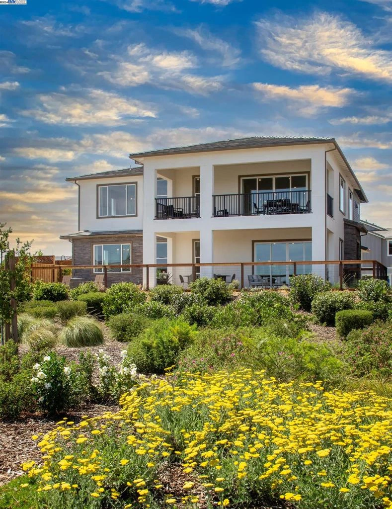 Lakeview Living at its Finest! Single Level Home with Private Backyard with Lake Views! Chic penthouse-style contemporary flat at One Lake master-planned community in Fairfield! Over $18,000 in designer selected upgrades. Single-level living with downstairs front entrance stairwell leading into home on second floor. Spacious light-filled open layout featuring kitchen with eating bar, plentiful counter space and optional desk plus great room adjacent to covered deck—ideal for entertaining or taking in all the lake and countryside views. 2 bedrooms, 2 with walk-in closets, and both bathrooms include dual sinks. Office included. Attached two-car garage and driveway. Included solar electrical panels and solar lease program. Low voltage wiring includes wireless access point, media and two data/phone outlets at the great room and media and data/phone outlet at the primary bedroom.