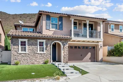 Back on the Market! Now is your chance to come home to the best of Fallbrook living with TWO homes on one 1.5-acre property! The main home, an approx. 2,800 SF, impressively renovated & mostly single-level, Spanish-style 4 bedroom masterpiece with owned solar, offers up incredible panoramic views of the hills & countryside. The approximately 1,350 SF, 3 bedroom separate, detached guest home with kitchen makes this property ideal for multigenerational living or hosting & entertaining guests. With a grove of approximately 150 mature, thriving Valencia orange trees ensconced on the land, this is an opportunity like no other in North San Diego County. Grand & immaculately maintained, step inside the main home to high wood-beamed ceilings, engineered hardwood flooring, lots of light, a gorgeous stone surround fireplace in the great room, & an impressive view deck that wraps around the home & is accessible through multiple areas, including the broad la cantina doors just off of the living & dining rooms. Sure to please even the most discerning chef, the kitchen unveils handsome wood cabinetry, leathered granite counters, a stone tile backsplash, & a full suite of high-end stainless steel appliances, including a wine fridge & a work or office space. An impressive wrought-iron chandelier anchors the dining area. The primary suite is a peaceful, spa-like retreat with private slider door access out to the view deck, an incredible walk-in closet & an ensuite spa-like bath with generous soaking tub, separate glass-enclosed shower, & dual vanities. SEE SUPPLEMENT... In the main home, all main living areas, the primary suite, an additional spacious bedroom, & the office (which could also be another bedroom) are on the main level. A walk-out basement with separate entrances is located below, featuring another vast bedroom & a full, ensuite bath. The front yard of the main house is a sensational, enclosed private patio area that can entertain dozens of guests & displays a water feature, fire pit, putting green, al fresco dining area, vegetable & herb gardens, & built-in seating for enjoying San Diego's amazing year-round weather. The detached guest house is a rare find with 3 beds, 2 full baths, & its own remodeled full kitchen with granite counters, stainless steel appliances & plenty of storage. Light, bright, & modern with updated ceiling fans & floors throughout, it's truly a home unto itself, not just an afterthought! The guest house enjoys an expanded deck & its own, fenced yard with a turf lawn. Just off of the guest house is a detached studio with its own deck & plumbing that is perfect for a salon, office, or gym. Each home has exceptional privacy, with a portion of the Valencia orange grove separating the separate, dedicated driveways. Enter the main house’s side of the property through the beautiful, automatic gate & enjoy plenty of room for extra parking or storage, along with a side parking area that is perfect for your RV or boat (accessible through a second, manually operated gate). Arrive at the guest house at the end of its own lengthy driveway with loads of additional space for parking your vehicles or toys! A walking path also connects each home to the other. A substantial, enclosed workshop area next to the garage at the main house is the finishing touch with bonus storage or workspace for any hobbyist, contractor, athlete, or outdoor enthusiast. A property that checks all of the boxes with NO HOA or no Mello Roos! Live a world away from it all while being just a short drive from downtown Fallbrook & the 15 freeway.