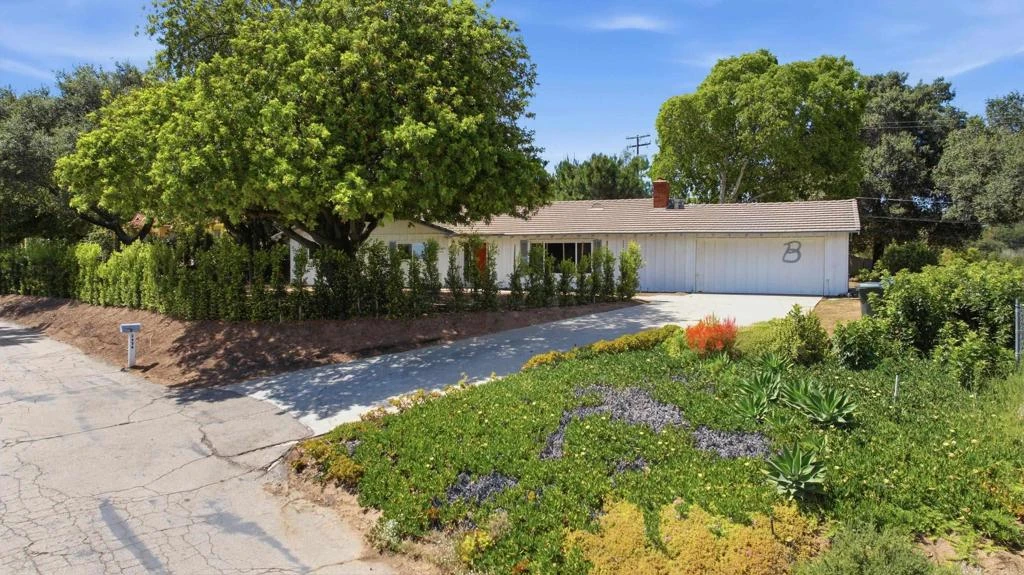 Lovingly maintained by the same owners for over 40 years! Set on a large, flat, and private lot with mountain views, this charming single-story home is loaded with potential. Newly planted privacy hedges creates tremendous privacy in the front yard as you walk towards the front door. Inside, a formal foyer entry leads to a spacious living room with a picture window and cozy fireplace. The formal dining room overlooks the expansive flat backyard, complete with a large tractor barn and additional shed for storage. The kitchen features granite counters, travertine flooring, and opens to a light-filled family room with walls of windows and a wood-burning stove. The layout offers three generously sized bedrooms, including a primary suite. Additional upgrades include a brand new electrical panel, updated windows throughout, and a newer water heater. This type of property is the perfect balance of charm, character, cozy and potential and rarely becomes available. Must see to appreciate!