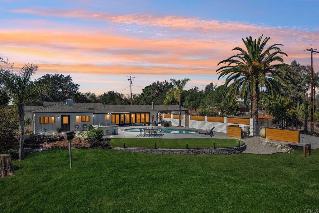 Modern California Farmhouse thoughtfully reimagined to reflect relaxed sun washed living w subtle Spanish influence throughout. Designed to feel elevated yet welcoming the home blends clean intentional lines natural materials black accents and layered textures to create warmth balance and an effortless indoor outdoor lifestyle. Do not let the year built mislead you this is a complete top to bottom remodel combining the craftsmanship and character of a bygone era w modern conveniences buyers expect. At the heart of the home is a spacious chefs kitchen featuring brand new stainless KitchenAid appliances incl a 36in propane gas range w exterior vented hood ideal for everyday living and entertaining. The kitchen opens to expansive layered living and dining areas capturing sweeping inland views north toward Sleeping Indian and east toward Mount Palomar offering beautiful sunrise and sunset vistas. Extensive stamped concrete throughout the driveway walkways and front porch creates a cohesive finished look rarely found on properties of this size. The expansive driveway accommodates approx 20 vehicles ideal for collectors hobbyists large gatherings or business parking needs. Glass front doors frame surrounding views reinforcing seamless indoor outdoor connection. The approach to the front porch is set back behind architectural block walls topped w modern horizontal wood fencing for privacy accented by a bougainvillea lined walkway setting the tone for the California lifestyle throughout. Situated on a rare flat approx 1.5 acre parcel the property offers exceptional outdoor living w remodeled pool and spa expansive deck areas fire pit space and a stunning outdoor kitchen island perfect for entertaining relaxing and enjoying sunsets or star filled evenings. Designer finishes incl wide plank hardwood flooring tongue and groove sun washed paneling custom barn doors and remodeled baths. The primary suite is a true retreat w spacious walk in shower exceptionally large walk in closet and real wood burning stove adding warmth without heating the entire home. The living room features an addl fireplace and walls of windows filling the home w natural light and views. Attached under the existing roofline yet separated by a covered carport is a bonus room approx 12 x 20 offering flexible space for office studio gym or creative use not incl in sq ft. A fully detached 1bed/1bath guest house offers approx 400 sq ft (incl in MLS sq ft) w full kitchen full bath split AC & cozy cottage atmosphere ideal for guests extended family or rental income. Addl outbuildings incl a Quonset hut approx 35 x 12 separate wood structure approx 21 x 11 and storage container approx 8 x 20 offering rare versatility. Fully fenced w two gated entrances accommodating agricultural use equestrian pursuits horses farm animals business ops car collectors or hobby enthusiasts. Addl upgrades incl fresh int and ext paint tankless water heaters and thoughtful improvements enhancing comfort and function. Properties offering this level of privacy flat usable land and flexibility rarely come available a truly special opportunity designed for California living at its best.
