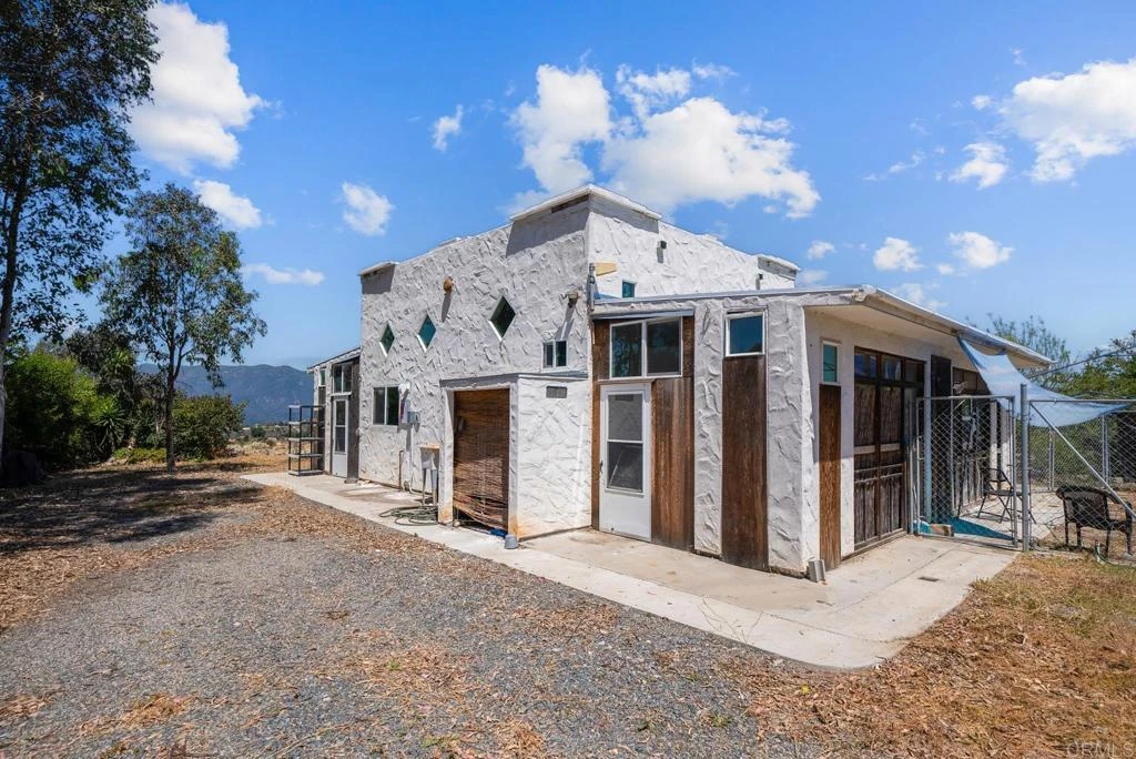 A secluded retreat on 8.45 acres of usable landscape in De Luz, where sustainability meets breathtaking vistas. Tucked away in a private setting, this extraordinary property offers a rare combination of privacy, natural beauty, and eco-conscious design. A standout feature is the expansive 30’ x 60’ Quonset-style workshop, complete with a bathroom, providing versatility for work, creativity, or extended stays. The main residence built in 2016 is a thoughtfully crafted 1-bedroom, 1-bath gem with approximately 500 sq ft of interior living space, complemented by a patio offering an additional 1,000 sq ft of flexible space. The home’s elevated positioning captures sweeping panoramic views, while its design showcases non-toxic, sustainable materials including clay-based paints, recycled denim insulation, VOC-free wood sealant, bamboo flooring, and artistically detailed concrete floors with custom etching and mosaic tile accents. Inside, soaring 12-ft ceilings and strategically placed windows fill the space with natural light and a welcoming sense of openness. Ceiling fans, an infrared heating system, and the natural positioning of the home ensure comfort year-round. The fully fenced large dog enclosure, offers a secure space for pets, while a whole-house filtration system provides fresh, clean water. The property operates on solar power with battery back-up and does have an agricultural electric meter for low-cost electricity, and water is sourced from FPUD. Outdoor amenities include an outdoor shower, laundry area, RV/camper parking with a carport, and a second shower tucked into a natural boulder setting. Despite its peaceful remoteness, this eco-friendly sanctuary is just minutes from Temecula, Murrieta, and Fallbrook, and it has possible Ross Lake privileges. The lower portion of the property showcases native Southern California flora, untouched by agriculture, with a mix of majestic oak trees and a boutique citrus grove of over 200 trees, including Bonnie Brae and Meyer lemons, and blood oranges, all cultivated without pesticides or chemicals. This property offers an exceptional opportunity to embrace sustainable living in a tranquil setting, all while remaining close to modern conveniences. An incomparable retreat that seamlessly blends natural beauty, privacy, and thoughtful design. You’ll love living in Fallbrook, where small-town charm meets Southern California convenience. Just 20 minutes to downtown Fallbrook and a short commute to I-15, you’ll find yourself surrounded by scenic rolling hills, citrus and avocado groves, and a warm sense of community. Enjoy nearby wineries, golf courses, hiking and equestrian trails, and vibrant local events such as the annual Fallbrook Avocado Festival, Veterans Day and Christmas Parades, weekly farmers market, and countless community gatherings hosted by the Chamber of Commerce. Photos represent condition at previous listing last year, small changes have been made.