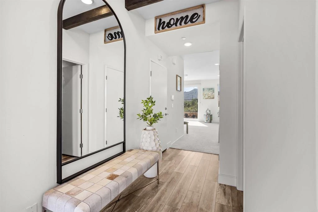 Situated on a desirable CORNER lot, this newer modern CASTELLO PLAN 3 DETACHED home offers elevated living with sweeping HILLS AND SUNSET VIEWS from every room. Designed with both style and functionality in mind, the residence features an open and airy floor plan filled with natural light, clean architectural lines, and contemporary CUSTOM FINISHES throughout. The spacious main living area flows seamlessly into a beautifully appointed kitchen, perfect for entertaining and everyday living. Large windows frame picturesque views of the surrounding hills and capture stunning evening sunsets. A highly desirable BEDROOM and FULL BATHROOM on the MAIN LEVEL provide flexibility for guests, multi-generational living, or a private home office. Upstairs, additional expansive LOFT is turned into a MOVIE THEATER with incredible SURROUND SOUND SYSTEM and CUSTOM WALLS DESIGN. Enjoy indoor-outdoor living with peaceful surroundings, scenic vistas, and the convenience of a prime corner location. This modern home combines thoughtful design with separate primary suite with TWO LARGE SEPARATE CLOSETS, beautiful views and a versatile layout ideal for today’s lifestyle. Equipped with whole house WATER SYSTEM, whole house wrapped GOVEE LIGHTS SYSTEM, built in ALARM SYSTEM, this home represents the best there is on the market. Conveniently located in the vibrant Citro Community, surrounded by incredible nature and touched by gentle breezes and with such an easy access to major freeways, you will love coming home every day!