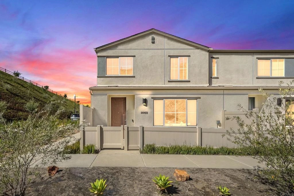 Welcome to 35103 Lemongrass Lane in the beautiful Citro Community. This is the "Meyer Plan 4" unit. It offers a modern 3 bedroom, 2.5 bathroom home with 1,480 square feet of living space, a loft/bonus room and 2 car attached garage. Positioned on a PRIVATE CORNER LOT, this residence boasts PAID SOLAR panels, enhancing energy efficiency. Enjoy easy access to the 15 and 76 freeways, making commuting a breeze. The spacious interiors are perfect for both entertaining and relaxing. Don’t miss the chance to own this serene and stylish home. Schedule a viewing today! First showings begin this weekend! Open House Saturday & Sunday, March 8-9 from 11am-3pm. See you there!