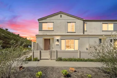 Experience the pinnacle of modern living in this stunning 2023-built Duet-style home. Rare and elevated, boasting 4 bedrooms and 2.5 baths across approx 1,668 sq. ft., and a 2-car garage plus 2 additional attached parking spaces, a rare luxury offered to only a handful of residences here. This isn't just another unit—it is arguably the most desirable location in the entire community. Perched on a premier corner lot with only one shared wall, this residence offers a rare level of seclusion. Unlike neighboring units that face parking rows, your arrival is defined by a charming, meandering path lined with olive trees and lush greenery. This truly feels like a private sanctuary. The interior is flooded with natural light thanks to the home’s end-unit position and an abundance of windows that capture breathtaking views of the surrounding mountains. The designer kitchen features a massive center island, elegant granite countertops, and a custom, sparkly blue backsplash that adds a touch of modern flair. Perfect for entertaining, the open concept flows seamlessly into the living spaces. Step outside to the only patio in the community featuring a wrought iron fence. Because of its elevated position, this design allows for incredible cross-breezes and an "open and airy" atmosphere while you soak in the mountain vistas—a feature truly unique to this home. Enjoy full access to the Citro Community Gardens and preserved groves, resort-style amenities hiking trails, a sparkling pool, spa, community room, and play areas. Don't miss this one-of-a-kind "lifestyle upgrade" in Horse Creek Ranch! Strategically located just off the I-15 at the 76, this home is a game-changer for commuters. Whether you are heading south to San Diego or north to Temecula, you are perfectly positioned to slash your travel time and enjoy a seamless transition from work to your private sanctuary.