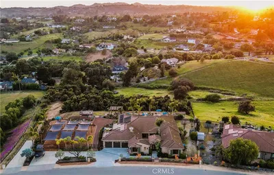 Behind the gates of Malabar Ranch, this Spanish Mediterranean–style estate offers a serene Southern California retreat designed for elevated living and effortless entertaining. Set on 2.11 acres, the residence commands attention with timeless Santa Barbara style stucco, arched windows, manicured landscaping, and a grand sense of arrival. For the car enthusiast, there is an attached 4-car garage and 9,000 lb 4-post car lift. Inside, a dramatic two-story living room sets the tone with soaring ceilings and a graceful staircase, creating an atmosphere equally suited for large gatherings or quiet reflection. The main residence features 5 bedrooms and 5.5 baths, thoughtfully appointed to blend comfort with sophistication. At the heart of the home, the chef’s kitchen is both beautiful and functional, appointed with a Sub-Zero refrigerator, dual ovens, dual dishwashers, and a generous island. From the kitchen sink, enjoy tranquil views of the rolling Fallbrook hills: a daily reminder of the property’s exceptional setting. The kitchen transitions naturally to the dining room, breakfast nook, and outdoor entertaining spaces, encouraging seamless indoor-outdoor living. Outdoors, the estate unfolds into a series of inviting terraces, each oriented to capture the sun’s journey over the hills. Enjoy morning coffee as the sun rises and gather at day’s end to watch the sky glow at sunset. The resort-style pool and spa, cedar-wrapped sauna, and built-in barbecue island complete the experience, creating a private sanctuary that feels worlds away. The detached one-bedroom guest house adds flexibility for extended stays, offering comfort and privacy for visiting family or friends. Balancing scale, privacy, and refined architectural detail, this estate embodies the best of Southern California living - a place where luxury feels relaxed, nature is ever-present, and home becomes a destination.