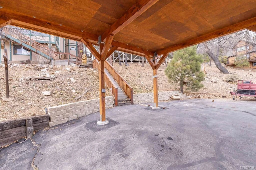 Endless views steal the show at this Fawnskin retreat, offering a cozy, treehouse-like feel with the spectacular lake and mountain scenery you've been dreaming of. Step out onto the expansive deck and take in sweeping panoramas of the surrounding National Forest, Big Bear Lake, the San Gorgonio mountain range, Snow Summit--and even front-row seats to the July 4th fireworks. Inside, the great room invites you to relax with a stunning ledger-stone fireplace, vaulted ceilings with warm tongue-and-groove wood finishes, and newer Pergo hardwood flooring. The beautifully recently remodeled kitchen opens seamlessly to the living area and features upgraded Frigidaire slate stainless appliances and elegant quartzite countertops. The primary bedroom offers direct access to a cozy sunroom--for enjoying the morning light and peaceful forest views. A versatile bonus room provides endless possibilities as a third bedroom, home office, or hobby space. Additional highlights include owned solar panels and a generator wired for battery backup, a carport with a Level 2 EV charger, an under-house workshop, and a fenced area for kids and pets. This one truly checks every box--an absolute must-see!