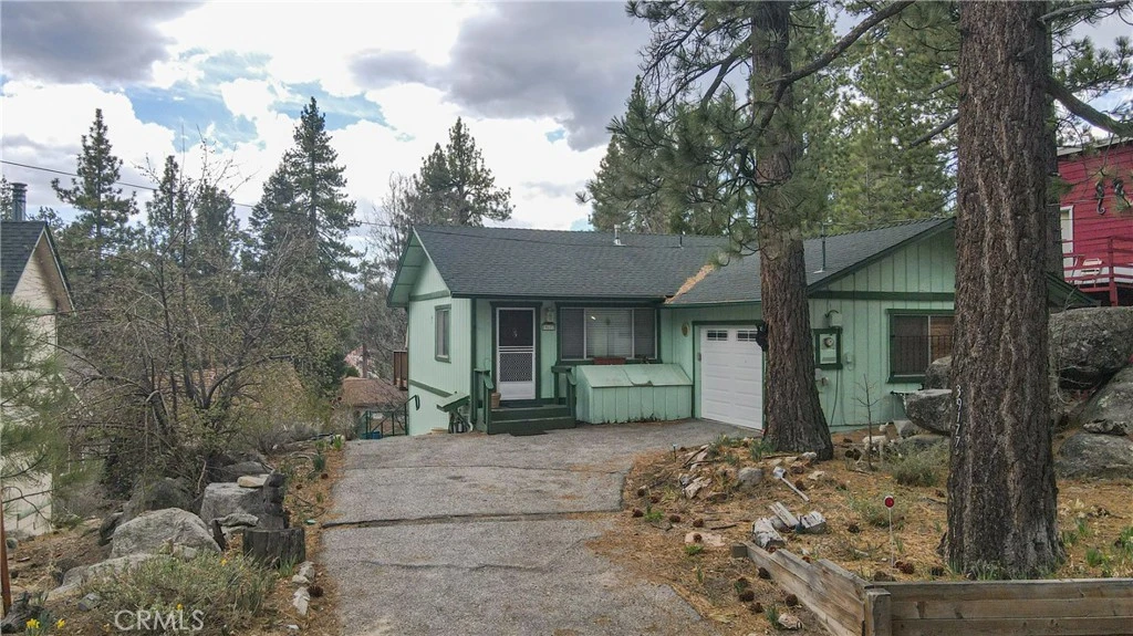 Welcome to this beautifully maintained 2-bedroom, 2-bathroom home offering 936 sq. ft. of comfortable living space on a 5,430 sq. ft. lot, complete with a rare 1-car attached garage. Step inside to an open and inviting floor plan filled with natural light. The kitchen features butcher block countertops and backsplash, a stainless steel sink, white appliances, and ample cabinet space—perfect for cooking and entertaining. The family room boasts a cozy fireplace with a rock surround, ceiling fan, and multiple large windows that open to a spacious deck with stunning scenic views. The primary bedroom includes wood floors, a large closet, ceiling fan, and an en-suite bathroom with a walk-in shower. The hallway bathroom offers a tub/shower combo and single vanity. Enjoy outdoor living on the expansive deck—ideal for relaxing, dining, and taking in the mountain surroundings. Additional features include a large under-deck storage space, newer roof, central heating, and in-garage laundry. The level driveway and attached garage provide rare convenience for the area. Located just minutes from Big Bear Lake, shopping, dining, and recreational activities, this turnkey property combines comfort, functionality, and charm. Don’t miss this opportunity to own in one of Fawnskin’s most sought-after neighborhoods! Move-in Ready – A Must See! Can be Sold Furnished.