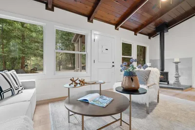 Discover the perfect blend of peace and convenience in this charming Felton redwood retreat! Tucked at the end of a private lane near Henry Cowell Redwoods State Park, this updated cottage offers the ultimate escapejust minutes to downtown Felton, Santa Cruz beaches, hiking trails, and local wineries. Freshly painted inside and out, it features open-beam ceilings, skylights, and new luxury vinyl plank flooring that fill the home with natural light. The modern kitchen boasts granite counters, stainless steel appliances, and a center island ideal for entertaining. Unwind in the spa-style bath with soaking tub and vessel sink, or step onto the expansive deck to relax among towering redwoods and the soothing sounds of the nearby brook. With dual-pane windows, on-demand water heater, newer roof, and indoor laundry, this home is move-in ready. Recent road and culvert upgrades plus nearby fire stations and street hydrants provide added security and convenience. Whether youre seeking a full-time residence or weekend getaway, this redwood forest sanctuary is ready to welcome you home.