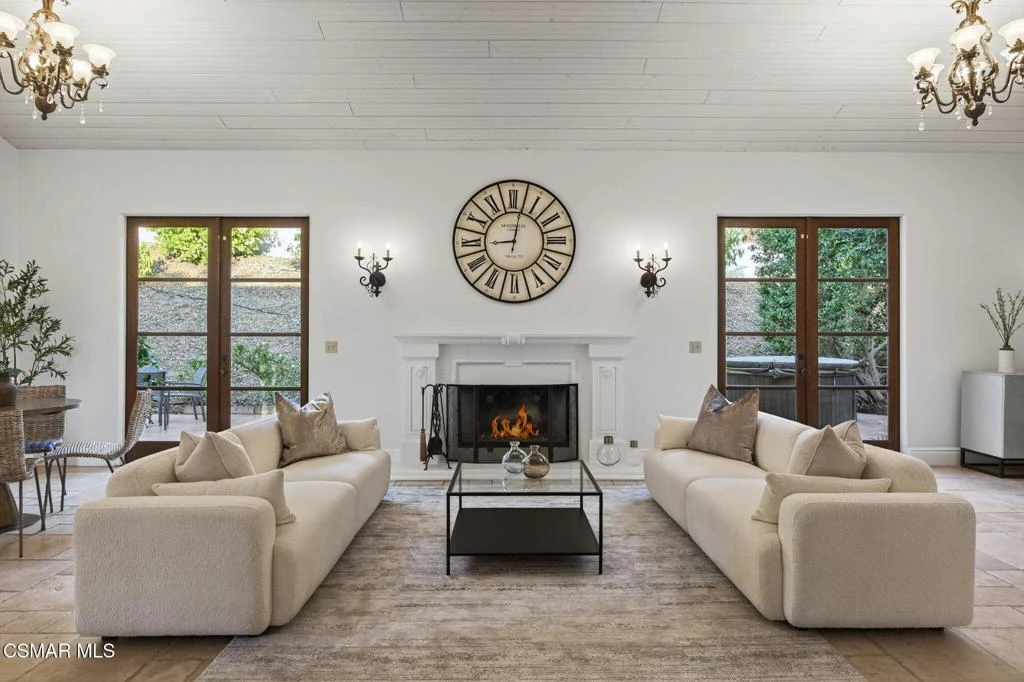 Welcome to this beautifully crafted Mediterranean custom estate set along one of Ventura County's most scenic roads, where rolling hills and the Los Padres Mountains create an unforgettable backdrop. Resting on just over one acre, this private retreat boasts over 4,000 sqft. of estate living with endless possibilities. The main residence features 3,220 sqft., complemented by a separate 860 sqft. guest home designed as a mirror reflection of the main villa's architectural charm. Step through the front courtyard and into a home rich with European ambiance and timeless character. The interiors blend Old-World Mediterranean craftsmanship with thoughtful modern touches - vaulted wood-beamed ceilings, authentic travertine flooring, custom finishes, and tall French patio doors that fill the home with natural light. The formal dining room flows seamlessly into the grand living room which is framed by two soaring pillars, creating an impressive entrance - an ideal setting for intimate dinners or lively gatherings. The kitchen offers both charm and functionality with granite counters, a glass-tile backsplash, Monogram appliances, beautifully built custom cabinetry, and a large walk-in pantry. A few steps down, a cozy family room with wood-like flooring and oversized bay windows takes full advantage of the setting - the sweeping mountain view truly takes center stage in this inviting space. The luxurious primary suite is a sanctuary of its own, featuring vaulted ceilings, a built-in coffee bar with refrigerator, and both a window and French doors that frame the mountain views and open directly to the private pool terrace. The spa-inspired bath includes dual sinks, a soaking tub, an enlarged walk-in tile shower, a separate water closet, a dedicated massage-table area, and a generous walk-in closet. The secondary bedrooms are great-sized, and the indoor laundry room provides exceptional utility with ample cabinetry and a convenient linen sink. Just outside, the estate invites year-round indoor-outdoor living with multiple covered patios, a built-in BBQ, and idyllic spaces for Al fresco dining or enjoying morning coffee overlooking the mountains. The gated pool area is perfectly positioned to capture the views as well, offering a serene, private retreat. The estate includes a 3-car garage, an exceptionally long driveway with room for all the toys, RV parking with hookups, and private parking for the guest house, which also features its own driveway and separate metered utilities - a rare and valuable benefit. Perfectly positioned across the property, the detached 2-bedroom, 1-bath guest home can be used for private quarters for extended family, luxurious guest space, or a desirable income-producing rental, the guest house elevates both the value and function of the compound. The grounds are embraced by mature fruit trees, avocado, orange, lemon, olive, and more, bringing both beauty and bounty throughout the seasons. With additional land and room for additional possibilities such as vineyards or future enhancements, the estate offers space to dream and expand. A true Mediterranean escape - custom crafted with style, surrounded by beauty, and designed to be lived in, loved, and shared.