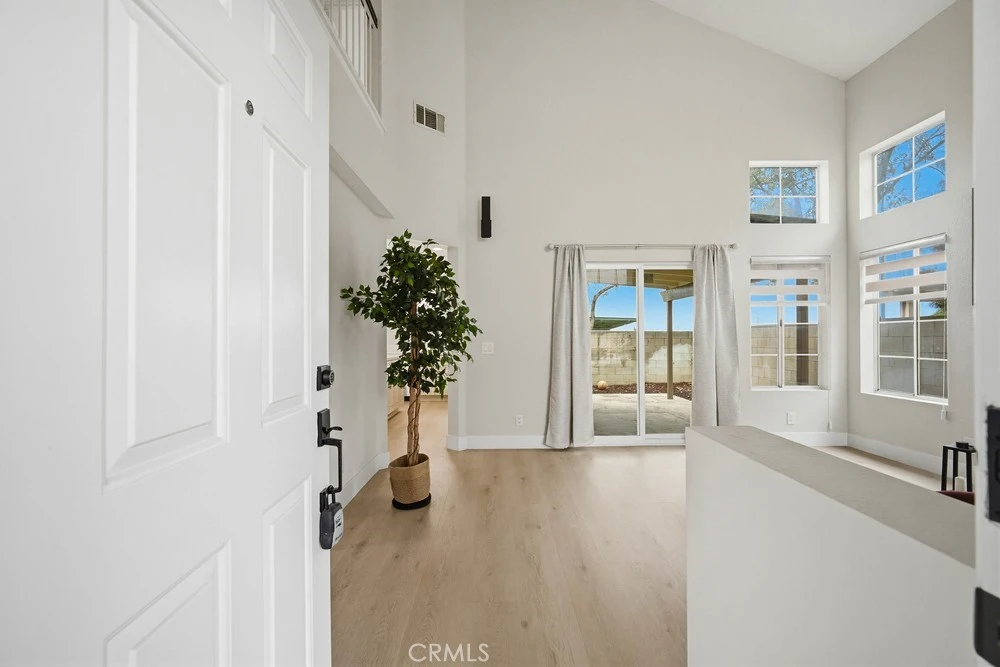 Great home in the desirable Southridge community in Fontana. At the entrance you can see the very high ceilings with a chimney in the living room. The kitchen has been renovated with very good quality, gorgeous countertops, and a nice kitchen island. Dining space and a half bath in main floor. Second floor has a master bedroom with a spacious walk-in closet as well as a master suite bathroom with dual vanity. You will also find 2 other bedrooms, each one with spacious closets and both sharing a full bathroom. This home has a 2 car garage in the main floor and 2 sliding doors that face the patio. Very good location close to the elementary school. The house has been renovated. This is a home you must see!! Ready to move in!!
