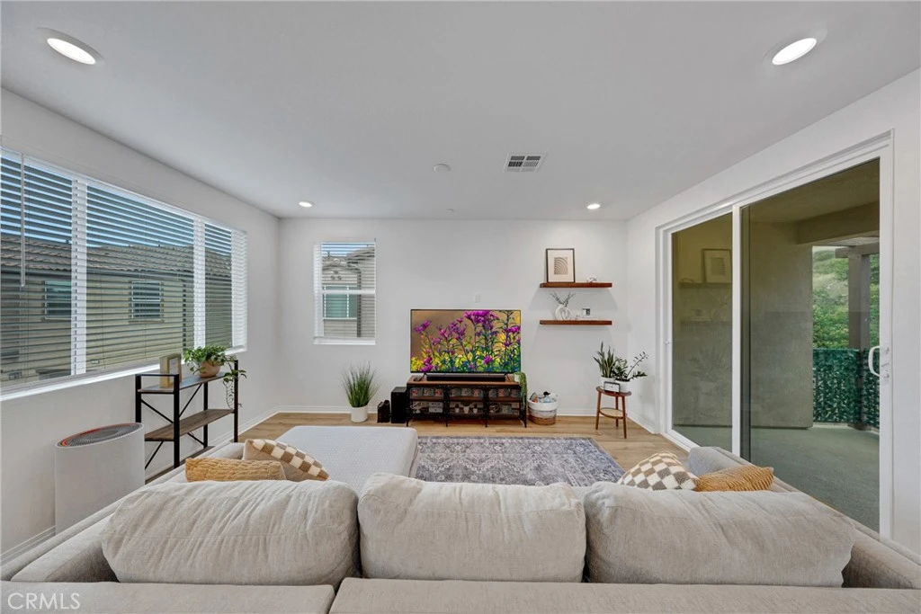 Welcome to The Retreat in Fontana, featuring a well-appointed 1,183 sq ft home with modern upgrades and a functional layout. Upgraded flooring runs throughout the open living and dining areas, which flow seamlessly into the kitchen—ideal for everyday living and entertaining. Large dual-pane windows and recessed lighting create a bright, inviting atmosphere. Both bedrooms are thoughtfully positioned for added privacy. The spacious primary suite includes a walk-in closet and an en-suite bathroom with dual sinks and a walk-in shower. A secondary bedroom and full bathroom provide flexibility for guests or a home office. Additional highlights include in-unit laundry and a private covered balcony, perfect for relaxing outdoors. Located within the gated Retreat community and the highly desired Etiwanda School District, residents enjoy resort-style amenities including a pool, club house, playground, and beautifully maintained grounds. Energy-efficient features such as solar panels and a tankless water heater help reduce utility costs. Conveniently close to shopping, dining, parks, and major freeways, this move-in-ready home offers both comfort and convenience.