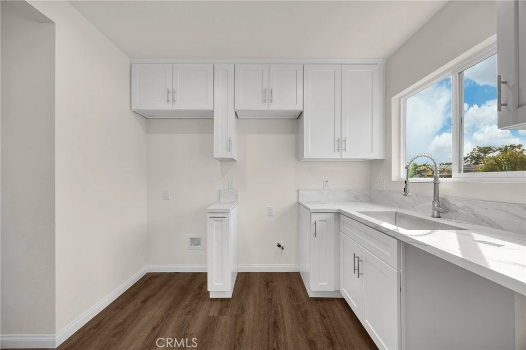 This newly rehabilitated 3 bedroom 1 1/2 bath home is almost a complete rebuild- The electrical, plumbing, roof, garage, stucco, double pane windows, kitchen, doors and tankless water heater are all new. The exterior has been finished with a new concrete driveway which extends a walkway that surrounds the home. The 2 car garage is 440 square feet and has laundry hook-ups. The driveway has room for several more cars and even the potential for RV parking.
