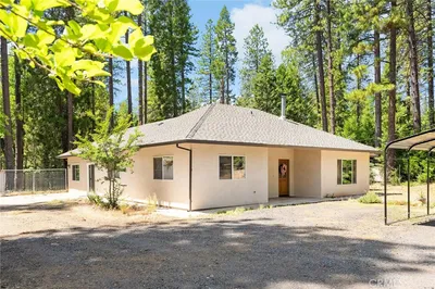 Nestled peacefully in one of Forest Ranch’s most sought-after neighborhoods, this charming 3-bedroom, 2-bathroom home rests on a spacious and private 1.15-acre parcel, surrounded by towering pines. From the moment you step inside, you’ll be captivated by the lightly painted walls, beautiful hardwood floors, and the abundance of large windows that flood the home with natural light while framing picturesque views of the outdoors. The expansive living area offers the perfect space to relax and unwind after a long day, whether you’re watching your favorite movie, reading a book, or hosting a lively game night with friends. Designed for everyday living and effortless entertaining, the kitchen is both functional and inviting. It features tile countertops, classic wood cabinetry, updated appliances, and a gas range that makes meal prep a breeze. Just off the kitchen is a cozy dining area complete with charming built-in cabinetry and a wood stove set against a brick surround—adding warmth and character to your gatherings. When it’s time to rest, the primary suite will quickly become your favorite retreat. It offers a generously sized closet, private access to the outdoors, and an en-suite bath featuring a large vanity and a tiled walk-in shower. But the surprises don’t stop there—this home also includes a huge bonus room located beneath the main living area. Whether you envision a game room, home gym, office space, or an ADU to gain some extra income, the possibilities are endless. Additional amenities include recessed lighting, ceiling fans throughout, an indoor laundry room with storage cabinets and a utility sink, a newer roof, newer HVAC system, a water softener, and more. The community itself adds even more value, offering access to a refreshing pool, cabana, BBQ area, and tennis courts for you and your guests to enjoy. Outside your back door, the expansive back deck provides the perfect spot to soak in the tranquil surroundings, breathe in the fresh mountain air, and enjoy the peaceful sounds of nature. With over an acre of usable land, there’s plenty of space for gardening, outdoor activities, or simply letting your imagination run wild. Offering the perfect blend of privacy, natural beauty, and community amenities, this is a rare opportunity you won’t want to let pass you by!