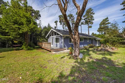 One of a kind offering has multiple log-cabin style structures: The main studio home has a kitchen with granite counters and full bath, mosaic tile floor and woodstove. The detached bedroom building has a full bathroom, walk in closet and office area. Finally, the small detached bedroom building has a full bathroom and lovely picture window with dramatic forest view. There is also a 1,920 sq. foot, two story shop building with 220 power and plumbing. The landscape has Virgin Creek flowing year round and features a picturesque waterlily filled pond. Cross the charming footbridge and enter a magical forest with a possible, rare old-growth redwood and many hiking trails. The residence and detached bedrooms are all well built with double paned windows, propane heaters and 2 with wood stoves. For evening gatherings, there is a large cement patio and fire pit centrally located to the buildings. Wear your hiking shoes to properly view this property- it's worth the walk under the beautiful trees and untouched forest setting.