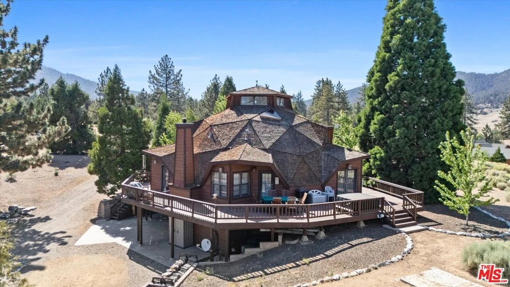 Welcome to The Enchanted Dome - an extraordinary geodesic retreat nestled on 10 fully-irrigated, ultra-private acres in the heart of Cuddy Valley. Surrounded by hundreds of thoughtfully planted trees - including towering Sequoias, Blue Spruce, Cedars, Quaking Aspens, and Pinon Pines - this one-of-a-kind property offers serenity, seclusion, and stunning natural beauty. A mature Sequoia even doubles as a magical natural playground beneath its expansive canopy. The home's architectural brilliance is matched only by its warm and welcoming interior. Enter through stunning double doors, beautifully embellished with glass and embossed detailing, into a grand foyer bathed in natural light. Inside, soaring ceilings, wide-plank oak floors (that run throughout the house!), and clerestory windows create a light-filled, open-concept living space. Three high-end, energy efficient ceiling fans with lights provide tremendous indoor air circulation and aesthetic appeal. The centerpiece is a grand brick fireplace that radiates warmth and charm, with an oversized mantle and wood storage, perfect for cozy gatherings year-round. The updated, eat-in kitchen features brand-new appliances, a custom pantry with granite counters and shelves on both sides, a large bay window, and a gorgeous 100-year-old Glenwood cast iron stove that's as beautiful as it is functional - a true piece of American History. The adjacent den is a true family room with comfy seating and large TV. And, around the corner from the den sits a lovely powder room. The spacious first-floor primary suite includes a wealth of antique furnishings, large, cedar-lined closet, ceiling fan, A/C unit, and private deck access with hot tub. The en-suite bath plays sweet homage to original owner's onsite Christmas Tree business, has doors to outside to enjoy the hot tub or let in fresh air, and includes a wonderful heat light to keep you warm during winter months. Upstairs, a large loft offers versatile space for guests, office, or hobbies, coming complete with trundle bed, sofa bed, antique furniture - and vast, hidden storage. Next to this, a second bedroom includes a cozy sitting nook, leaded-glass interior window, and more clever hidden storage. A skylit full bath completes the upper level. A major bonus is the converted garage - now a recreational paradise featuring a pool table, foosball, infrared sauna, dart board, TV, stereo center, office nook, dining area, and extra fridge. Open the doors and let in the fresh mountain air while entertaining or relaxing! Additional downstairs spaces include a converted bedroom with electric fireplace, a secluded woodshed and storage area, laundry/mudroom with exterior access, and abutting bathroom ideal for cleanup after outdoor adventures. Step outside to enjoy the expansive wraparound decking with space for al fresco dining, morning coffee, or soaking in the hot tub under the stars. The entire property is fenced and features a dedicated fenced enclosure with small animal shed, picnic and seating areas throughout the grounds, large water tank, and 250-gallon propane tank. This turnkey retreat comes fully furnished with a curated mix of antique and modern pieces, hand-selected to complement the home's unique style and history. There's also a complete HVAC system - heating and A/C. Whether you're looking for a full-time residence, weekend getaway, or nature-filled retreat, the The Enchanted Dome offers an unmatched combination of privacy, comfort, character, and mountain charm. More than a home - this is an experience. Come see The Enchanted Dome and fall in love.