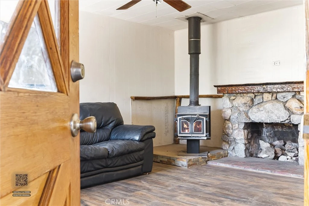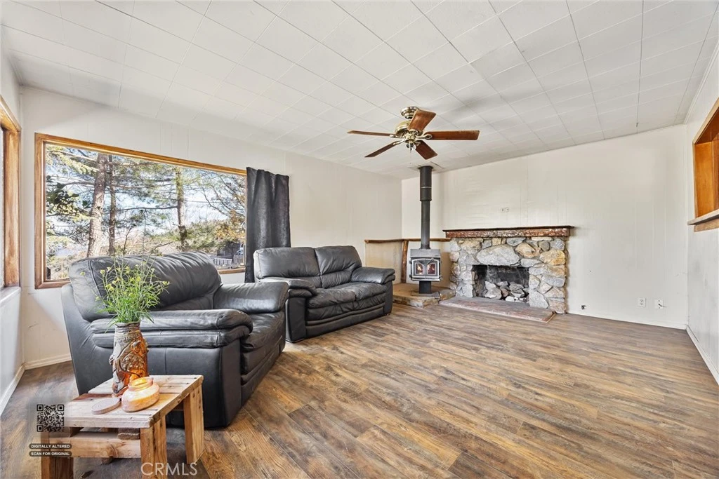 Tucked along a quiet paved stretch of E. End Drive in Frazier Park, this charming mountain home sits on a rare combination of four contiguous lots totaling over 15,000 square feet—offering space, sunlight, and room to breathe in every direction. A covered front porch welcomes you in, the kind of place where mornings begin with coffee and fresh mountain air while looking out across the surrounding hills. Inside, the home offers a comfortable and functional layout with two well-sized bedrooms, one bathroom, and a cozy living room anchored by a wood-burning fireplace—perfect for cool mountain evenings. Vinyl flooring in the living area adds a clean, updated touch, and the roof was recently replaced, giving added peace of mind. The property itself is where this home really shines. With multiple adjoining parcels, the land is mostly flat and usable—rare for the mountain. The driveway easily accommodates 4–6 vehicles, with additional access to the rear of the property for RV, boat, or extra parking. Mature trees provide shade and character throughout the yard. Recent improvements include front gate repairs, extensive tree maintenance around the home, crawlspace leak repairs in the bathroom, a new roof on the storage shed, electrical improvements to the detached sheds, and installation of a small air-conditioning unit. And one detail locals will immediately appreciate: E. End Drive is paved and county-maintained, a valuable advantage in an area where many nearby streets remain dirt roads. Whether you're looking for a weekend mountain getaway, a first home, or a property with extra land and flexibility, this Frazier Park retreat offers space, simplicity, and the quiet pace of mountain living.