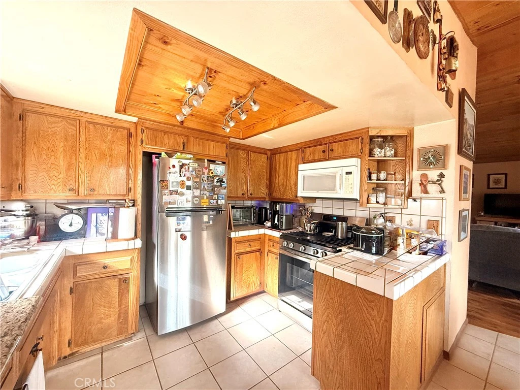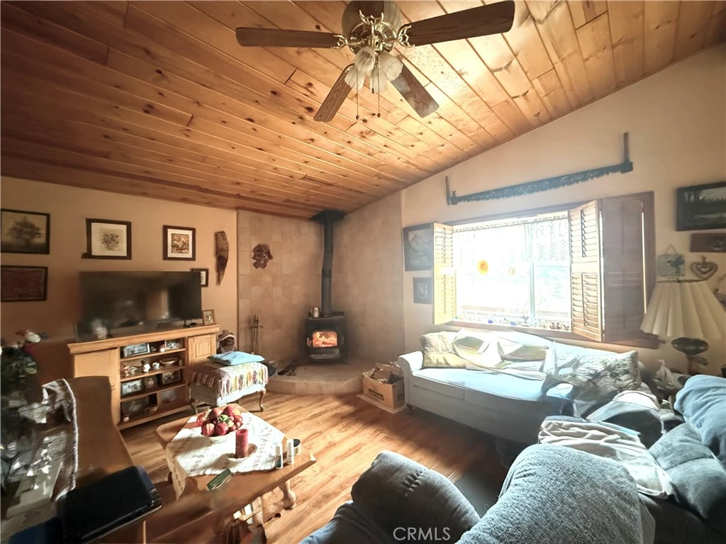 First time on the market in over 30 years! Nestled in the serene hills of Frazier Park, this charming two-story mountain retreat offers breathtaking views, and a cozy cabin feel, all while being conveniently located just under 40 miles from Santa Clarita and approximately 20 miles from the Hard Rock Casino. The main level welcomes you with a generous front porch—perfect for morning coffee while watching the sunrise. Inside, vaulted ceilings create an open and airy atmosphere, complemented by a cozy wood-burning stove in the spacious living room. The open-concept layout flows seamlessly into the dining area, featuring sliding glass doors that open to a balcony for fresh mountain air. The kitchen offers ample cabinetry and comes equipped with newer stainless-steel appliances. Ceiling fans throughout enhance comfort, and the home is filled with natural light. The main level also features a full guest bathroom with well-maintained tile, a generously sized primary bedroom with an en-suite bathroom, and a spacious guest bedroom. Abundant closet space is found throughout the hallway. The lower level offers over 500 sq ft of basement space with a private entrance—ideal for a potential ADU, guest suite, or bonus living area. This level includes a full bedroom with ample closet space, a half bath, and a well-appointed laundry room complete with newer washer and dryer, sink, counter space, and extensive storage. There is ample room to add a kitchenette if desired in the long run. Custom tile flooring, additional storage, and the water heater are also located on this level. Additional highlights include reinforced retaining cinder block walls and foundation, a full drainage system, low-maintenance exterior, garden space, gated entry, and parking for up to three vehicles. A rare opportunity with endless possibilities in a peaceful mountain setting—this is Frazier Park living at its finest.