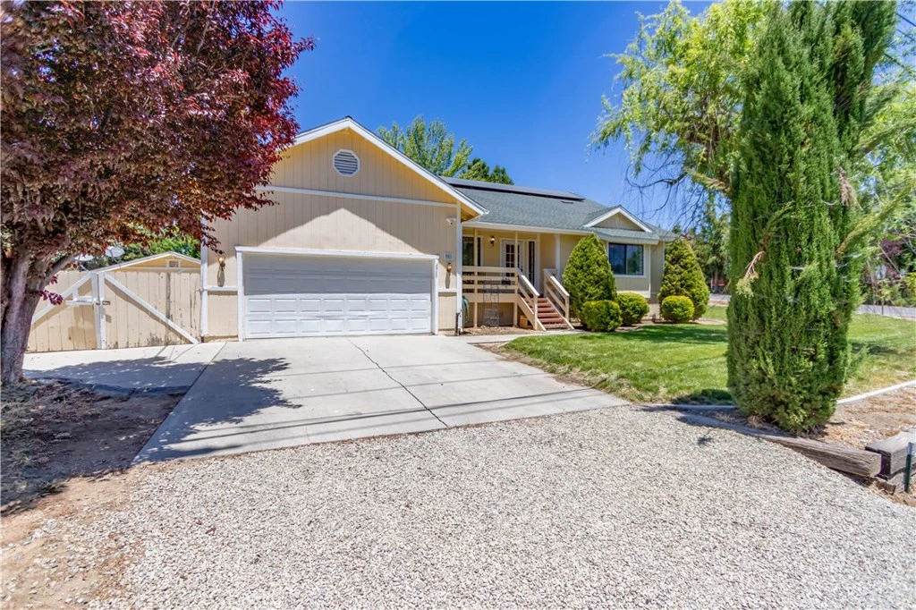 Welcome to this charming 4-bedroom, 2-bath home with a large bonus room upstairs, on a beautifully landscaped corner lot in the desirable Pinon Pines Estates. The inviting front porch sets the stage for the warm and welcoming atmosphere. As you enter, you’ll find a den seamlessly flowing into the dining area, with large windows filling the space with natural light. The family room features a cathedral ceiling and opens to a kitchen equipped with granite countertops, newer stainless steel appliances, plenty of cabinets, and a cozy eating area. Step through the sliding door to the back deck, an ideal spot for BBQs and entertaining in the peaceful backyard adorned with fruit trees. Inside the 2-car garage, a stairway leads to a large finished bonus room, perfect for a home office, craft room, or guest quarters. The gated side yard offers potential for RV parking and includes a large shed/workshop and wood storage area. The paid-off Solar System is an excellent additional feature, which will significantly reduce your electric bills.