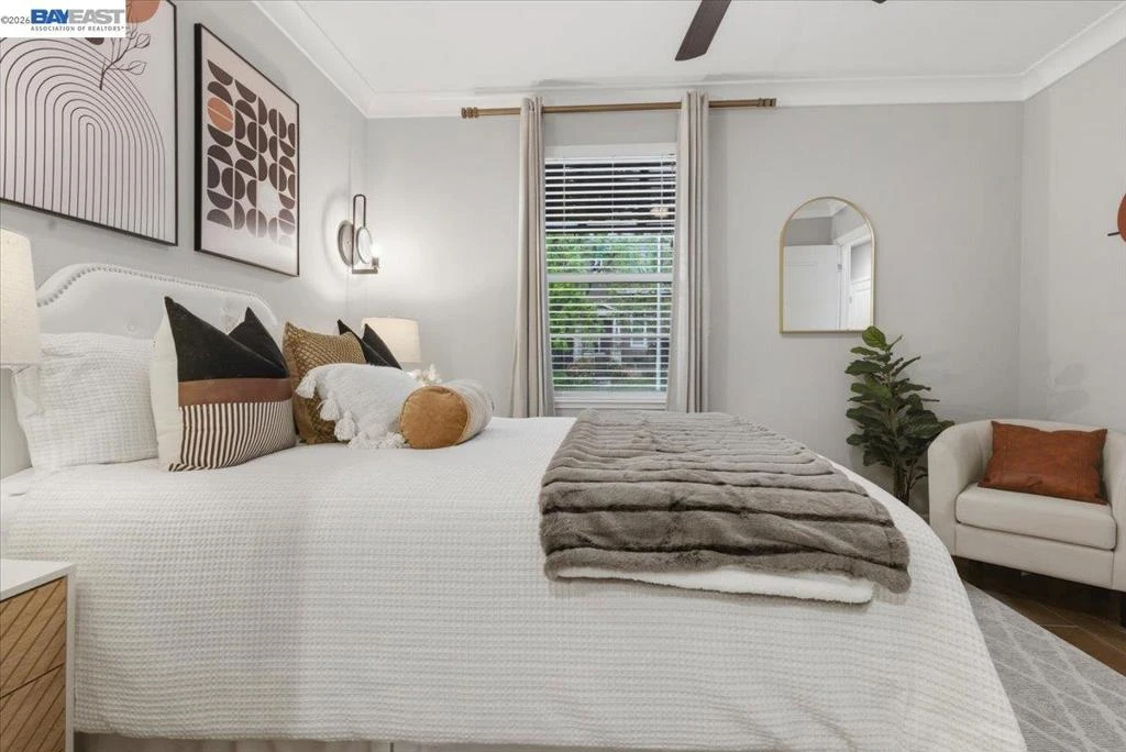 First time on market! Stunning Nuvera MODEL home built in 2021 in Fremont’s desirable Parkmont neighborhood. North facing unit with 4 beds and 3.5 baths, featuring $200K+ in upgrades, high ceilings, and abundant natural light. Open-concept layout with spacious living/dining area and a chef’s kitchen with quartz countertops, large island, and stainless steel appliances. Private balcony extends living space. Flexible floor plan includes a first-floor en-suite bedroom—ideal for guests, office, or rental. Expansive primary suite with walk-in closet and dual vanity bath. Includes owned solar, whole-house water softener, triple-zone HVAC with smart thermostats, tankless water heater, hardwood floors, and top-floor laundry. Community offers BBQ area and ample parking. Prime location near BART, Amtrak, Whole Foods, dining, Quarry Lakes, and top schools with easy access to Hwy 880/84. Great opportunity for homeowners or investors.