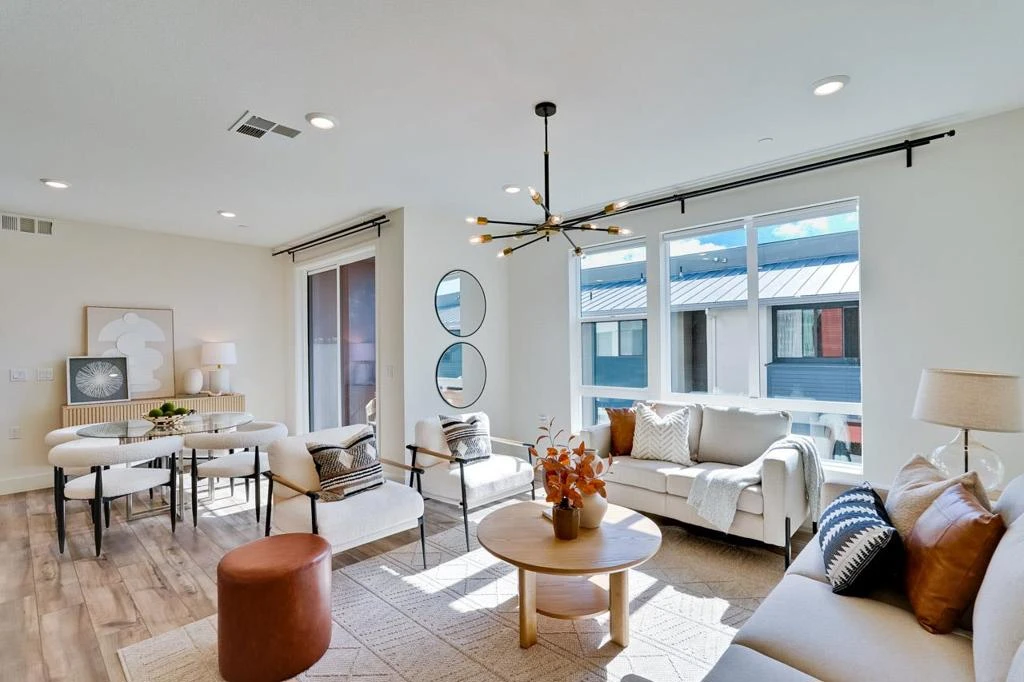 Welcome to 3690 Innovation Way #302, a sophisticated third-floor corner residence in Fremont's desirable Warm Springs Innovation District. This sun-drenched 3-bedroom, 2-bath home features a prime northwest-facing orientation, expansive dual-pane windows, and soaring 9-foot ceilings, creating a bright, inviting atmosphere. Secure entry and elevator access add everyday convenience. The open-concept layout flows seamlessly from the spacious great room to a chef-inspired kitchen with an oversized island, ideal for entertaining or working from home. Modern finishes and sleek design enhance its contemporary appeal. The primary suite offers a peaceful retreat with a walk-in closet and spa-like bath, while two additional bedrooms provide flexibility for family, guests, or a home office. Highlights include in-unit laundry, an attached two-car garage with EV-ready outlet, owned solar panels, and a Lennar 10-year structural warranty. Enjoy resort-style amenities including a fitness center, heated pool with cabanas, clubhouse, BBQ areas, parks, bocce, and basketball courts. Located within the highly rated Fremont Unified School District and close to BART, Highways 680 and 880, shopping, and major tech campuses. Its a prime location that keeps you connected to everything that matters.