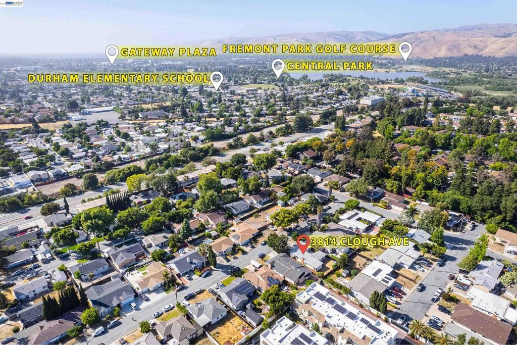 This beautiful single-story ranch-style home is ideally located on a tree-lined street in central Fremont. Enjoy the convenience of being close to shopping centers, restaurants, transportation, top-rated schools, hospitals, supermarkets, the post office, movie theaters, Fremont Central Park Lake Elizabeth, freeways, BART and the vibrant new downtown area. In excellent condition, this home offers a smart and functional layout with 1,184 square feet of well-designed living space. It features 3 beds, 2 baths, a 5135 sq ft lot. The upgraded kitchen includes a new freestanding electric stove, new microwave hood, modern cabinets, Corian countertops, and recessed lighting. The spacious great room boasts an open-concept layout combining the living and dining areas, a cozy fireplace, and two large picture windows that overlook the private courtyard, filling the space with natural light. The expansive master suite offers direct access to the courtyard through double-pane doors and includes a renovated en-suite bathroom. Additional highlights include freshly painted interior and exterior, double-pane windows, recessed lighting and vinyl plank flooring throughout. The serene backyard is perfect for relaxing after a long day. Located within walkable to Durham Elementary and Lake Elizabeth.