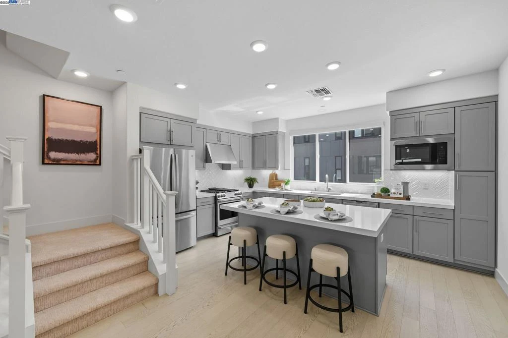 Stunning 5-year-old luxury townhouse-style condo in the heart of the sought-after Innovation community in Warm Springs! This modern home offers 3 spacious bedrooms & 3.5 baths—all en-suite—including a ground-floor suite perfect for guests or a home office. The open-concept main level features a chef’s kitchen with quartz countertops, subway tile backsplash, shaker cabinets, stainless steel appliances, and a large island ideal for entertaining. Additional upgrades include engineered hardwood floors, new carpet, designer lighting, smart home features, solar panels, Lutron lighting (Alexa compatible), and an attached side-by-side 2-car garage. Enjoy resort-style amenities including a clubhouse, fitness center, beach-entry pool, fire pits & BBQ area—all walking distance from the home. Just steps to the brand-new Bringhurst Elementary with Mandarin immersion, 4-acre park, and Warm Springs BART. Easy access to 680/880, Tesla, and Pacific Commons shopping & dining.