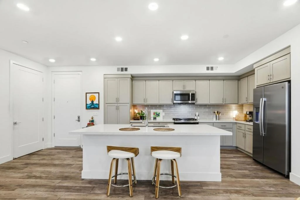 Modern & Luxury living. Security building and no stairs. Private garage with A rare and exceptional opportunity to own a luxury residence in one of Fremont's most desirable neighborhoods. This corner unit offers a unique vantage point and enhanced privacy. The interior is flooded with abundant natural light through wall-to-wall windows and enhanced by soaring ceilings, with mountain and city views. Nestled in a resort-style community, this home provides access to a large range of amenities: a fully equipped gym, relax by the pool, or host gatherings at the clubhouse and BBQ areas. The community also features parks, play structures, and bocce ball courts. Perfectly located for commuters, you are near major highways I-680 and I-880, and just a short distance from the BART station. The expansive primary suite offers a generous walk-in closet and a spa-like ensuite bath, while two additional bedrooms provide space for family or a home office. The grand living area flows into a chef-inspired kitchen with an oversized island ideal for entertaining. Additional highlights include LVP flooring, in-unit laundry, an attached two-car garage with an EV-ready outlet, owned solar panels, and the peace of mind of Lennar's 10-year structural warranty. No rental restriction. Won't last long!