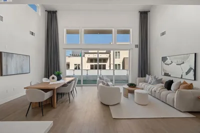 Bright corner unit with abundant natural light and flexible layout. Ground floor features private suite with ground floor entrance, bedroom, full bath, sitting area, kitchenette, and laundryideal for extended family or guests. Main level offers 3 bedrooms and 2.5 baths with high ceilings, recessed lighting, and large windows. Kitchen includes quartz island, pantry, ample cabinetry, and water softener. Primary suite with soaking tub, walk-in shower, and walk-in closet. Built-in closets in all bedrooms. Additional features include private elevator, covered balcony with fireplace, second-floor laundry, and storage room. Two-car garage with epoxy flooring, EV charger, and built-in cabinets. Community amenities include clubhouse, pool, spa, sauna, fitness center, BBQ area, cabanas, parks, and trails. Easy access to Hwy 680 & 880 and Fremont Schools.