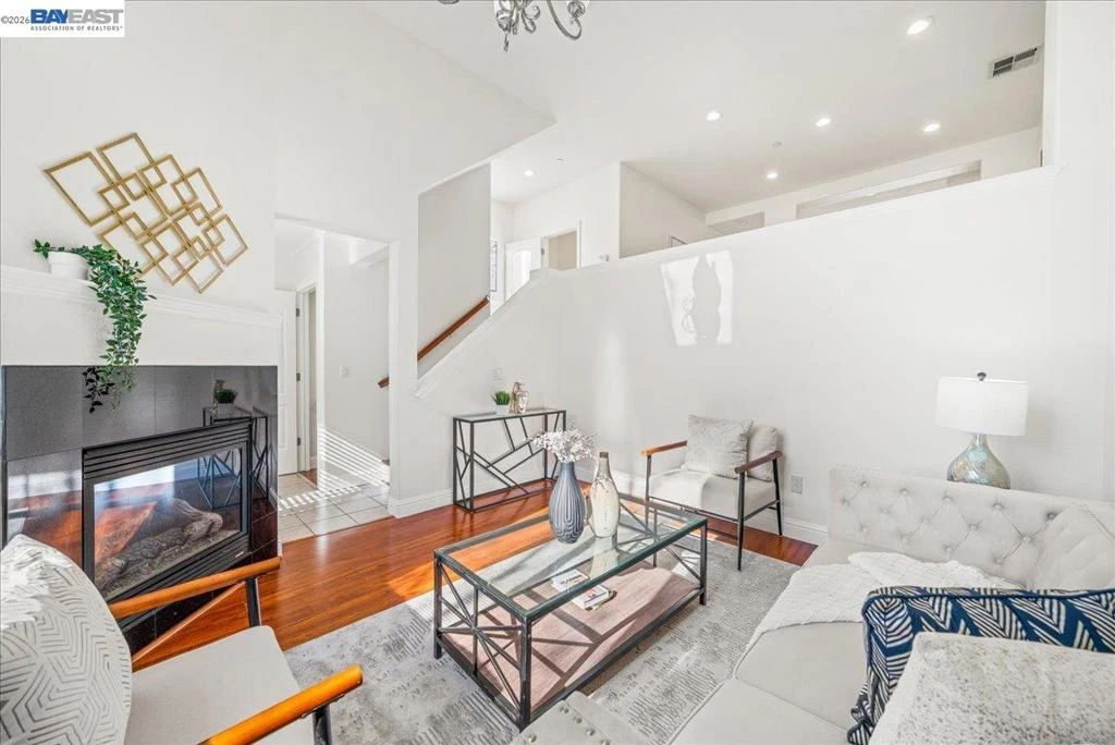 Welcome to this beautifully updated 3-bedroom, 2.5-bath townhome in the sought-after Mayfield community of Warm Springs, Fremont*Perfectly positioned overlooking the community park & walking paths, this light-filled home offers a rare blend of privacy, views, & convenience*The open floor plan features laminate flooring, recessed lighting, fresh interior paint, & a stylish kitchen w/new cabinetry, quartz countertops, & stainless steel appliances*The living room showcases soaring ceilings & a cozy gas fireplace, while large windows throughout fill the home w/natural light*Both full bathrooms have been refreshed w/new vanities, refinished tubs, new faucets, & updated fixtures, along with new toilets in all 3 bathrooms*The spacious primary suite offers vaulted ceilings, a private balcony w/park views, & a walk-in closet*Convenient first-floor laundry includes a washer and dryer*The tandem 2-car garage provides generous storage*Enjoy the enclosed front patio overlooking open green space, perfect for relaxing outdoors*The Mayfield community features a central greenbelt park and community center with a low HOA. Ideally located near Warm Springs and Milpitas BART, Tesla, shopping, hiking trails, and Highways 680, 880, 237. Move-in ready!