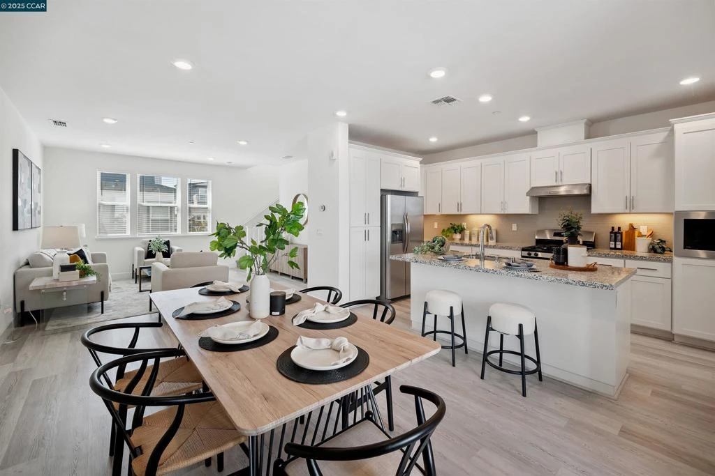 Welcome to 92 Zenith, a stunning townhouse style condo in the heart of Fremont. This beautifully designed condo offers 1,591 sq. ft. of thoughtfully laid out living space across three levels. As you enter, you’re welcomed by a versatile downstairs den, perfect for a home office, workout area, media room, or kids’ play space. Upstairs on the main level, you’ll find an open concept layout filled with natural light, featuring luxury vinyl plank flooring throughout. The chef’s kitchen boasts quartz countertops, stainless steel appliances, and upgraded cabinetry. Step out onto the private balcony to relax and unwind. The top floor includes three spacious bedrooms and two full bathrooms, including a primary suite with an en suite bath. A conveniently located laundry area with washer and dryer completes the upper level. Additional highlights include an attached two car garage with EV charger and close proximity to guest parking and the community’s outdoor BBQ area. Nestled between Mission Boulevard and Stevenson, this prime location offers easy access to both Highways 680 and 880, as well as BART, making commuting a breeze. Enjoy all that the community has to offer, including Lake Elizabeth just a short walk away, scenic trails, parks, shopping, and dining.