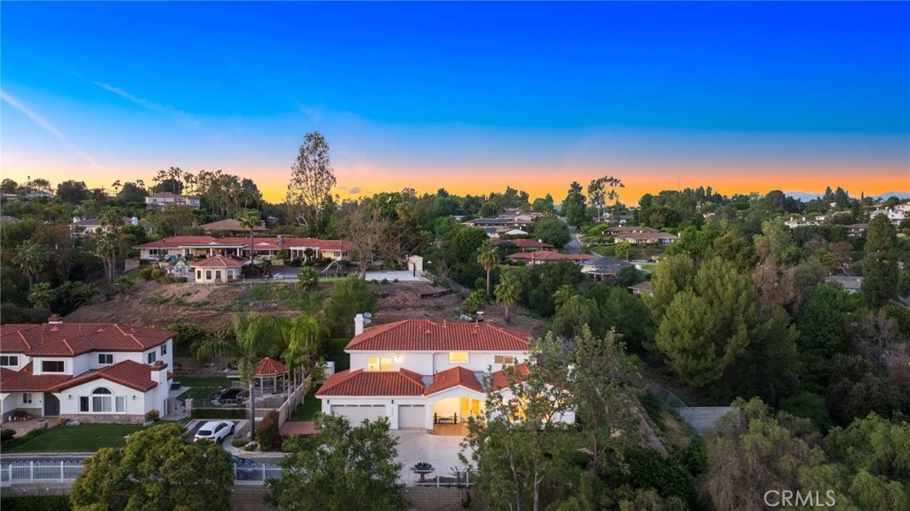 Experience panoramic views like no other from this stunning 5-bedroom, 5-bathroom residence, perched in an exclusive, private gated enclave of just four homes. From nearly every room, you'll enjoy breathtaking, approximately 270-degree views stretching all the way from the majestic Mount San Jacinto to the sparkling coastline of Catalina Island. Inside, the home is bright and open, featuring high ceilings and a dramatic two-story ceiling in the living room that fills the space with natural light. Classic details like crown molding and wainscoting add a touch of charm, while tray ceilings in the primary suite and family room bring a feeling of elegance. The modern kitchen has been beautifully updated with high-end finishes, plenty of cabinets, and generous counter space, making it a joy for both everyday meals and entertaining guests. The adjoining family room is spacious and comfortable, complete with a built-in entertainment center perfect for movie nights or game days. Every one of the five bedrooms is designed for comfort and privacy. The luxurious primary suite is your own personal getaway. Step out onto your private balcony to soak in the incredible views, and unwind in the spa-like bathroom, which features a soaking tub, dual sinks, and plenty of space to relax. The outdoor space feels like a private park. Situated on a large, beautiful lot, the backyard is peaceful and private, enhanced by mature fruit trees and lush landscaping. It's the perfect setting for quiet afternoons or hosting friends and family for an outdoor dinner. A three-car garage provides plenty of room for vehicles and storage, with additional guest parking available. Located in a highly desirable area, this home is zoned for the award-winning Acacia Elementary and the prestigious Troy High School, a huge plus for families. This special property offers a winning combination: total privacy, incredible luxury, and the kind of million-dollar views that people dream of. It's a rare opportunity to own a one-of-a-kind home in a serene and exclusive community.