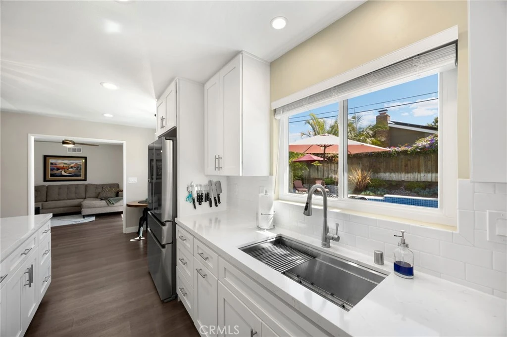 BEAUTIFUL, SINGLE-STORY home in a highly sought-after neighborhood in Fullerton. This home features a bright and open floor plan with 3 bedrooms, and 2 bathrooms with 1,668 square feet of spacious living space. You are welcomed at the entry into the spacious living room which features a beautiful two-way fireplace, recessed lighting and windows that bring in plenty of natural lighting. The beautifully designed kitchen features beautiful white cabinetry which provides ample storage, beautiful Quartz countertops, stainless steel appliances including a Wolf professional 6 burner range, recessed lighting, countertop seating and is adjacent to the formal dining room which makes it great for entertaining. The Large family room includes recessed lighting, two-way fireplace and has beautiful views of the backyard. The Primary Bedroom Suite features a LARGE bedroom area with direct access to the backyard, beautiful ensuite bathroom with a double sink vanity and beautiful glass enclosed shower. Down the hall are 2 generously sized bedrooms with plenty of closet space and a beautiful hall bathroom. Large private backyard features beautiful pool, covered patio area, mature landscaping and lawn area. Additional features of the property include 2 car oversized garage, dual pane windows, and inside laundry. This home is WALKING DISTANCE TO BEECHWOOD ELEMENTARY SCHOOL. It is also centrally located close to Cal State Fullerton, Gold Courses, dining, shopping, entertainment and is a short distance to Fullerton College and downtown Fullerton. This home is one you won't want to miss!