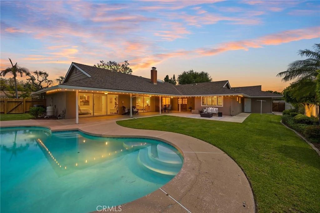 Welcome this beautiful home! Nestled in one of Fullerton's most popular and desirable neighborhoods, this magnificent single-level home offers over 3,200 square feet of elegant and comfortable living space. Walking distance to highly rated Hermosa Drive Elementary, this location is truly unmatched. Curb appeal abounds with newer exterior paint, beautifully maintained landscaping, new furnace and ductwork, and a sprawling corner lot that spans over 20,000 square feet. Step inside to discover a freshly painted, brilliantly designed floor plan that provides both grand scale and intimate comfort. Whether you are hosting formal gatherings or enjoying quiet evenings, you will love having dedicated spaces for every occasion, including a separate formal living room, a perfectly located dining room, and a warm, inviting family room. Enjoy a large family kitchen with a breakfast bar, separate eating area, and direct access to the rear yard. The home features five incredibly spacious bedrooms and three well-appointed bathrooms. The oversized primary suite is a true private retreat, complete with an attached en-suite bathroom and a sliding glass door that offers direct access the beautifully maintained, spacious rear yard. A unique and highly desirable feature of this home is the secluded 5th bedroom; situated in its own private wing with convenient access to its own bathroom, it serves as the perfect in-law quarters, guest suite, or private home office. Step outside to an absolute entertainer's dream. The sprawling rear yard features a sparkling pool, beautifully maintained landscape, and a large covered patio—perfect for outdoor dining, weekend BBQs, and hosting summer gatherings with family and friends. Rounding out this exceptional property is a dedicated, separate laundry room and a spacious 3-car garage providing ample storage and parking. Homes offering this incredible combination of single-level convenience, a half-acre corner lot, and premium Fullerton location rarely hit the market. Don't miss your chance to own this extraordinary home!