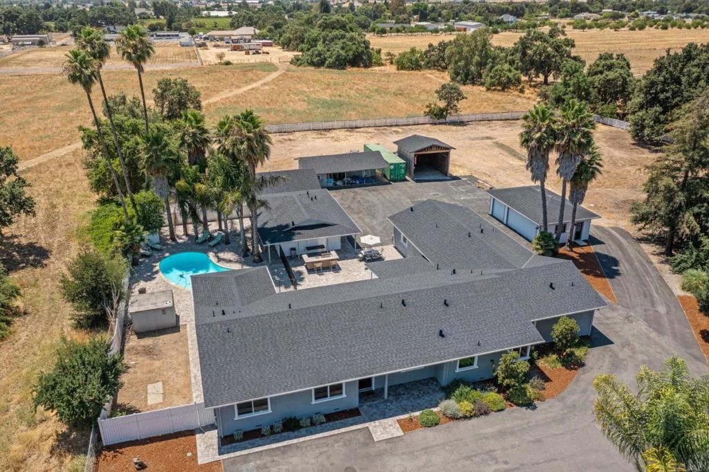 Welcome to your serene ranch retreat nestled on 2.17 acres of picturesque land on Foothill Ave. This property seamlessly combines spacious living with modern amenities, featuring three separate residences, each with brand-new roofs. The main house boasts 4 bedrooms and 2.5 bathrooms with gorgeous updates, a large kitchen, and butler pantry. Additionally, there's a second unit offering 3 bedrooms and 2 bathrooms, along with a detached ADU (Accessory Dwelling Unit) featuring 1 bedroom and 1 bathroom. All three units have their own kitchens and laundry rooms. These additional living spaces provide flexibility for multi-generational living or potential rental income. The expansive acreage is ideal for horses, goats, or other livestock, complete with two well-appointed horse stalls and a convenient hay barn. Outdoor enjoyment awaits with a sparkling pool and a courtyard featuring a built-in gas barbecue, perfect for entertaining. Car enthusiasts will appreciate the two large garages with new roofs, offering space for up to 9 vehicles, equipment, or hobbies. Impeccably maintained and conveniently situated, this ranch property on Foothill Ave offers a rare opportunity to embrace the quintessential California lifestyle with a touch of rustic charm.