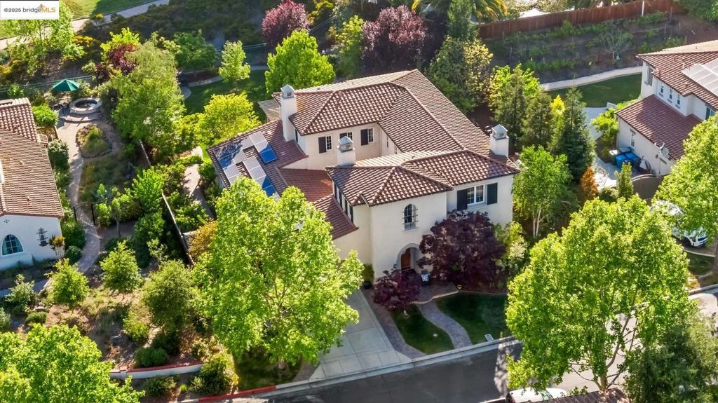 Mediterranean-style 5BD/4BA in gated Eagle Ridge Estates with golf course views. 4,056 sq ft on a 15,775 sq ft lot. Main floor features marble entry, hickory hardwoods, 10-ft ceilings, formal living & dining, great room w/fireplace, chef’s kitchen w/Thermador appliances, quartz counters, large island, and private courtyard w/fireplace. Guest suite + full bath on main. Upstairs: spacious bedrooms, built-in book wall, owner’s suite w/ large balcony, 5-piece bath, walk-in closet. Professionally landscaped backyard w/2,500+ sq ft pavers, pergola, outdoor kitchen, waterfall, greenhouse, raised beds & fruit trees. Extras: solar, A/C, 2 gas furnaces, garage workshop w/Sub-Zero fridge. Community pool, tennis, bocce, basketball, park, and 24/7 security. Luxury, privacy & resort-style living.