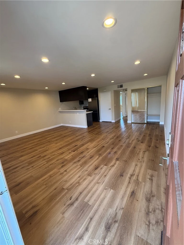 Updated 2BR/2BA unit for lease in desirable Glendale location. Features open floor plan with recessed lighting and wood-style flooring throughout. Modern kitchen with quartz-style counters, stainless steel appliances, contemporary cabinetry, and breakfast bar. Spacious bedrooms with mirrored closets. Updated bathrooms with modern finishes and glass shower enclosures. Includes central HVAC, private entry, community laundry, covered parking, and well-maintained common areas. Clean, bright, and move-in ready. Excellent lease opportunity close to shopping, dining, and transportation.
