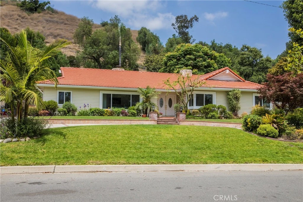 Welcome to an Incredible Custom-Designed Architectural Gem, with full view of the 18th fairway of the Glendora Country Club Golf Course. This exceptional & interesting property, upgraded by the Architect Owner, combines luxury, elegance, and functionality. A prime location where you can enjoy the scenic drive along the golf course as you approach your home, set above a beautifully landscaped property. A large driveway offers functionality and ample parking. As you step inside the entrance, you are greeted by an open concept space with view of the pool & cascading waterfall. With multiple versatile living spaces, you find immediately to your left, a cozy den with a fireplace, that is off the 2nd Primary Bedroom with full bathroom—perfect for guests, in-law quarters, or live-in nanny. This 1st Primary Bedroom connects to laundry/kitchen area. The home has been completely remodeled with all new flooring, featuring a spacious kitchen with dining area and brand-new VIKING appliances. Freshly painted throughout, all new interior doors and new lighting. Five Lg bedrooms in the main house including 2 Primary Suites. In a private area, the 2nd Primary Suite w gorgeous views, a remodeled bathroom w/ freestanding tub, all new quartz counter tops and a large walk in shower. Beyond the bathroom is a cedar lined walk in closet. Enjoy the views from your expansive windows and sliding doors, offering incredible views of the pool and rose garden, and a private access to your backyard. Additional Living Units: This property includes two ADUs (Accessory Dwelling Units). The 2nd house is a full studio, which was an architectural workspace, with a Lg living room, Lg bedroom/office, full bath, plus additional room that had a sink and stove in prior years. The 3rd house is set behind & above the main property, featuring a full bathroom, remodeled quartz countertops, vaulted beamed ceilings, a new split A/C unit, a deck, and golf course views. This property offers so much! Enjoy your large pool w/ jacuzzi spa, while you listen to the sounds of water cascading down a petrified rock wall nearby. All 3 buildings have been renovated with new flooring, new paint, new countertops, and more! Main House 3,006 SF, Studio House 798 SF, Upper House 293 SF. All Copper plumbing & HVAC is 2 years new, 3 separate water heaters (1 one per unit). Luxury living at its finest in this meticulously designed home, perfect for those seeking a golf course home with privacy and picturesque views.