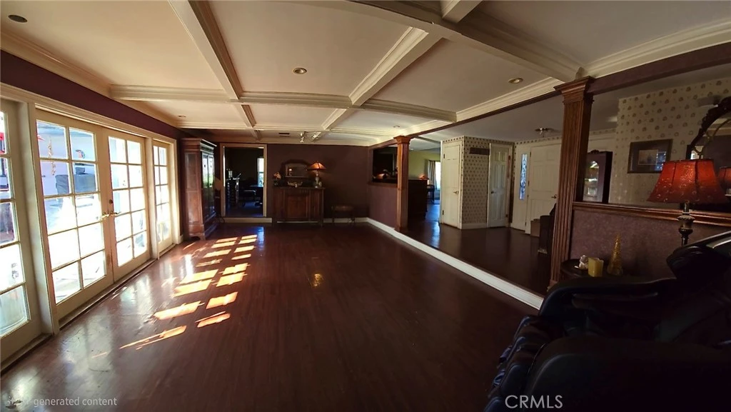 Very unique property with separate ADU which is two levels. APRX. 1/2 Acre in NW Glendora. The main estate is all one story. Perfect for Multi-Gen living! Stunning single-story corner estate featuring multiple fireplaces, formal living and dining rooms with coffered ceilings, rich wood floors, and seamless indoor-outdoor flow to a resort-style rock pool and spa with waterfall. Spacious split-wing layout includes a private primary suite with sitting area, dual-vanity walk-through shower, walk-in closet, and french doors to the patio. Additional bedrooms and baths offer flexibility and storage. The home is focused towards the tranquil resort style backyard, with multiple sitting spaces from the various rooms of the home. This is a MUST SEE home, with a Detached two-story ADU with private entry includes kitchen, bar, bath, game room, upstairs loft with fireplace, full kitchen, balcony, and shower in the bathroom, making the home ideal for guests or income potential. 4-car garage, storage areas, and workshop complete this rare opportunity. This home is all situated and overlooking the tropical backyard, with balconies, french doors and windows surrounding the tranquil pool and jacuzzi.