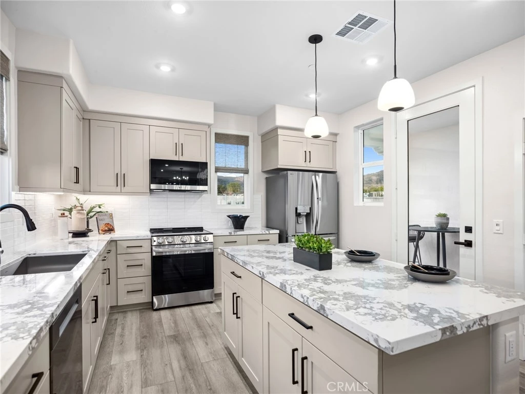 Come see the new plan 2 with 1,371 sf of open living and a convenient flex space on 1st floor for home office, work out room, studio or ? Come see what this 2 bedroom 2.5 bath stylish home with great room, deck off kitchen, Professionally designed, undulated handcrafted tile that gives texture and dimension to the custom full kitchen backsplash and leaves a natural and organic feel to the kitchen, along with a private front patio and the 2 car garage can do to complement your style of living. Upgraded flooring throughout - wood-look plank in living areas. Don't miss the chance to live in a brand new home in Glendora at Alisal
