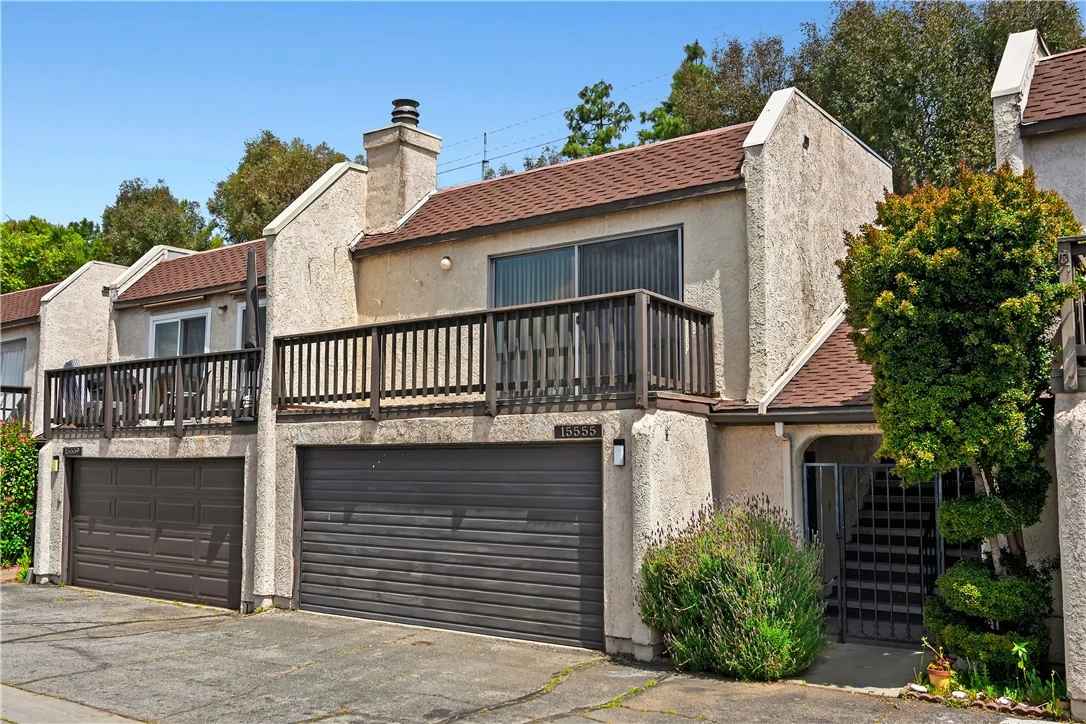 North of Rinaldi atop “Granada Ridge”: Freshly painted interior (including interior of garage) and super clean with new vinyl-flooring in entry and bathrooms + new carpeting in living areas. With partial and peek-a-boo views across the San Fernando Valley, this home has a walk-on balcony off of the Living Room (with fireplace) facing south, perfect for evening breezes and city lights at night. Newer systems include HVAC (approx. 3 years) and roof (approx. 2 years). Floorplan has a nice layout with 2 baths & 3 actual bedrooms and a surprisingly, large Primary with attached Bath. The primary bedroom has sliders that look upon a sweet patio and landscaping up the rear slope. The attached, 2-car garage with washer and dryer is below the unit and for the sole use of 15555 Crestview Lane. Community has security gate halfway up Midwood Drive plus common pool, spa and tennis court.