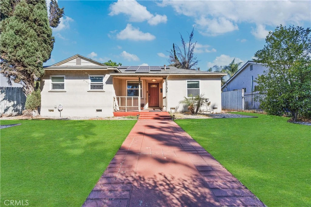Nestled in one of Granada Hills’ most desirable neighborhoods, this beautifully updated single-story residence seamlessly blends modern comfort with versatile living. Featuring 5 bedrooms and 4 bathrooms, including a fully permitted one-bedroom, one-bath ADU with separate utilities, this home offers approximately 1,854 square feet of living space on a generous 7,801-square-foot lot. Step inside to an inviting, light-filled open floor plan adorned with large windows, stylish modern finishes, and thoughtfully designed spaces. The primary suite features dual en-suite baths, allowing for flexible living arrangements and added privacy. The main residence includes four bedrooms and three baths, while the detached ADU provides the perfect setup for multi-generational living or an excellent rental opportunity. Both the main home and ADU are equipped with paid-off solar panels, enhancing energy efficiency and reducing monthly costs. An electric gated entry offers added security and convenience, complemented by RV access, a gated driveway, and ample parking. The outdoor spaces are equally impressive, with a covered patio, paved entertaining areas, and beautifully landscaped yards offering a serene retreat. The kitchens boast granite countertops and tasteful modern upgrades throughout. Zoned LARD6 with no HOA, this property delivers the freedom and flexibility every homeowner desires. Ideally situated near major freeways, shopping, dining, and top-rated schools—including Haskell STEAM Magnet, George K. Porter Middle, and John F. Kennedy High—this home represents the perfect balance of lifestyle, location, and investment potential. Don’t miss the chance to own this exceptional Granada Hills gem—schedule your private showing today!