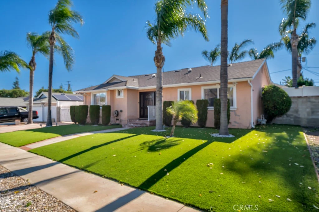 Welcome to this wonderful Granada Hills home in a highly desirable family neighborhood. The front yard features an upgraded turf grass with outdoor plugs and timers. The spacious living room has a cozy floor to ceiling marble fireplace with raised hearth, wood mantle, recessed lighting, easy care tiled floors and is conveniently open to the dining room and family room with lighted ceiling fan. The family's chef will love the remodeled kitchen with ample cabinets and counter space along with granite counters and backsplash, gas range, vent hood, dishwasher, recessed lights, large single stainless-steel basin and convenient breakfast nook with lighted fan. The large primary bedroom suite with direct access to the backyard has wood floors, crown molding, recessed lights and a lighted ceiling fan, walk-in closet and private bathroom with separate jetted tub, shower and vanity with dual sinks, granite counters and tiled floors. The large secondary bedrooms have ceiling fans and crown moldings. Some of the home’s many amenities include central air and heat for year-round comfort, double pane windows, wood and tiled flooring, copper plumbing, newer roof, tankless water heater, upgraded 200 AMP electric, and an office room, which has access to the entertainer's backyard and is equipped with high quality cabinets. There is a convenient inside laundry room. Your family will spend countless hours enjoying the entertainer’s backyard with a soothing fountain, spa tub, firepit area for BBQ and gym equipment. There is a 2-car detached garage with secure parking for multiple cars on the large paver driveway with electric gates. Close to parks, shopping and restaurants with easy access to freeways and transportation.