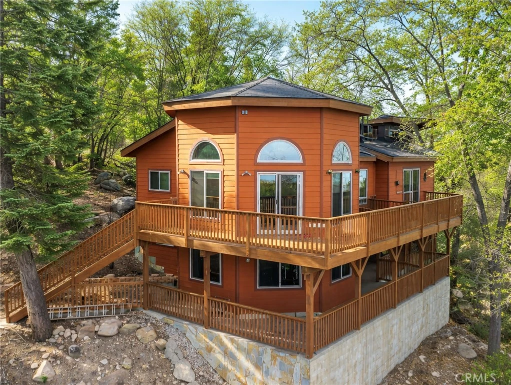 Extraordinary mountain retreat with breathtaking views, just minutes from Green Valley Lake. This thoughtfully designed home offers a flexible floor plan ideal for multigenerational living or rental use. Built with fire-resistant concrete siding and featuring interior sprinkler system, the property offers added peace of mind in a mountain setting. The all-electric home is well insulated for year-round comfort, with no gas or propane to maintain. The kitchen is a true standout with a commercial pizza oven, perfect for entertaining and creating a warm gathering space. Surrounded by thousands of acres of forest and nearby trail access, this property blends rustic cabin charm with modern, energy-efficient sensibilities. Centrally located between Lake Arrowhead and Big Bear, enjoy easy access to skiing, snow play, boating, hiking, dining, and mountain events year-round. Voluntary HOA offers reduced lake access and fishing privileges.