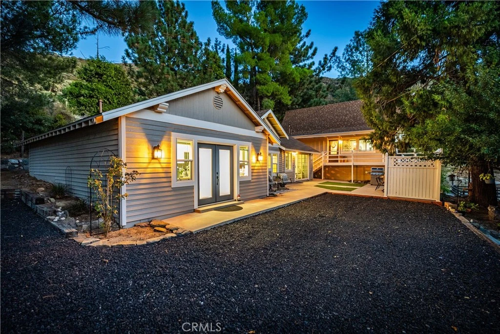 Stunning Green Valley retreat on a quiet looped street with beautiful views! This unique property sits on four parcels totaling almost one-half acre, with the main home and guest home situated on two, and two additional parcels large enough for a future shop or expansion. Both residences have been professionally remodeled, the main home in 2007 and the guest home in 2005, with further upgrades completed in 2021 and 2023, including a beautiful new wrap-around deck and fresh exterior paint. Both homes feature newer roofs, water heaters, dual-pane windows with custom tinting, and HVAC systems for year-round comfort, along with cozy pellet stoves for added warmth and charm. The main home showcases tile flooring, tongue-and-groove ceilings, and ceiling fans, with a well-designed kitchen that offers a bay window, quartz countertops, center island, and stainless steel appliances including a 5-burner gas range, microwave, refrigerator, and dishwasher. A downstairs bedroom and full bath provide convenience, while the upstairs offers a vaulted ceiling bedroom and family room. Additional features include an indoor laundry room with storage. The spacious guest home includes two bedrooms and a full bath, a large living room, and a versatile dining, office, or game room with vaulted ceiling and elegant chandelier. The kitchen is nicely appointed with an oversized pantry and laundry area, while vinyl plank flooring and carpeted bedrooms add comfort. The guest house is equipped with central heating and air, an additional AC unit in the living room, a pellet stove, and even a full attic storage area. The grounds are equally impressive, with mature trees, RV parking, four storage sheds including one Tuff® Shed with built-in shelving, and a professionally installed gazebo, creating a private retreat perfect for entertaining or relaxing. With space for multi-generational living, rental potential, or simply a serene escape with room to grow, this property is truly one of a kind.