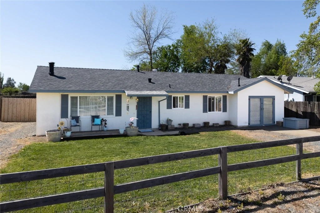With its charming rural setting, this home offers a perfect blend of tranquility and convenience. Imagine cozy gatherings in the family room, where laughter and stories are shared around the crackling pellet stove. The open kitchen, ideal for meals and entertaining, features modern appliances and ample storage space, making cooking a delight. The split floor plan not only ensures privacy but also enhances the overall flow of the home, catering perfectly to both gatherings and personal space. The spacious bedrooms provide ample room for relaxation. Step outside to the fenced yard, a perfect playground for all, or a serene retreat for gardening and outdoor activities. The large storage container adds practicality, offering extra space for tools, equipment, or seasonal items. With the back patio as your go-to spot for morning coffee or evening barbecues, you'll appreciate the fresh air and scenic views that surround you. Enjoy the best of both worlds with easy access to Hwy.99 - peaceful country living and the vibrant amenities of downtown Gridley, Chico, or Yuba City just a short drive away. This home truly has it all! Leased Solar! Newer Roof, HVAC and Electrical Panel!
