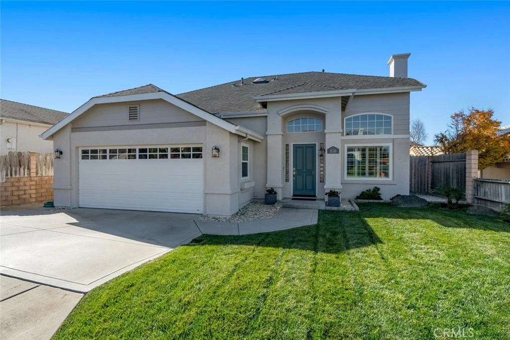 This exquisitely remodeled 4-bedroom residence features both upstairs and downstairs primary suites. Located in a highly coveted cul-de-sac bordering Grover Beach and Arroyo Grande, the home showcases refined craftsmanship and thoughtful upgrades inside and out. Creating a warm first impression as you arrive via the spacious driveway and new garage door is a manicured lawn and mature landscaping with automatic front and backyard drip irrigation and sprinkler system. The exterior has been freshly painted and enhanced with leaf guards on the gutters for easy maintenance. The walkway leads to an impressive entryway opening into the living room with soaring cathedral ceilings, Pergo laminate flooring, and a cozy fireplace featuring a new chimney back and updated fireplace glass. The elegant dining area flows seamlessly to the beautifully maintained backyard—perfect for entertaining with its concrete patio, lush grass lawn, privacy fencing, and manicured flower beds accented by mature trees. The kitchen offers abundant workspace with soft-close cabinetry, quartz countertops, a large island, and a built-in desk and pantry for extra storage. KitchenAid stainless steel appliances—including a gas range, microwave/oven combo, dishwasher, and refrigerator—add both style and functionality. Milgard windows with plantation shutters are complemented by new recessed lighting with dimmers, updated outlets and fixtures, and 5.5-inch baseboards throughout. Comfort is ensured year-round with central air conditioning and heating, plus a newer water heater. The upstairs primary suite includes an ensuite bath with dual vanities, a tiled walk-in shower, and a generous walk-in closet. The downstairs primary suite also boasts dual sinks and a custom stone-accented walk-in shower. Two additional bedrooms, one and a half bathrooms, and an indoor laundry room complete this versatile floor plan. Too many upgrades to list—this home truly has it all. Centrally located just minutes from the beach, the Village of Arroyo Grande, and so much more!