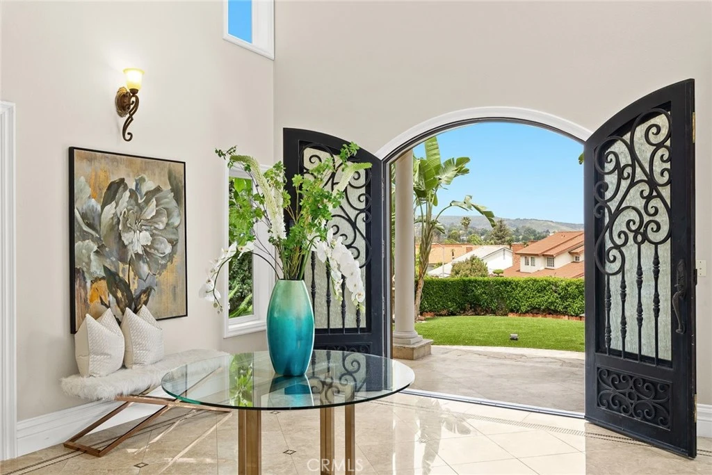 Absolutely stunning! This exceptionally rare opportunity presents timeless elegance and modern luxury within a custom estate on a sprawling 22,376 sq. ft. lot. Tucked away on a tranquil cul-de-sac, the property boasts verdant mountain and twinkling city lights views. The professionally designed and lavishly landscaped front and back yards and an automatic security gate, ensures unparalleled privacy. Encompassing 4,739 sq. ft. of living space with an ideal and efficient floor plan; it’s perfect for a large or multi-generational family. 6 sizeable bedrooms and 6.5 bathrooms, including 5 en-suites. Additionally, there are 2 kitchens, enhancing versatility for family living. You’re captivated as you step through the soaring front columns and custom wrought iron double-door entry. A dramatic 2-story foyer showcases a custom wrought iron staircase and exquisite tile flooring. The main floor features an expansive living room accented by a cozy fireplace with a custom tile mantel. An open family room flows into a spacious eating area with large windows and a sliding glass door, creating a picturesque backdrop of greenery. Enjoy the soothing sounds of the waterfall. The oversized formal dining room boasts a wet bar, and a vaulted ceiling with wood beams. Both remodeled kitchens feature granite countertops, stainless steel appliances, and ample cabinets. A center island in the main kitchen has a walk-in pantry adjacent to the eating areas. Another substantial en-suite, currently used as a gym, includes a big walk-in closet and a full bath with a walk-in shower and spa tub. The 5th en-suite, currently used as an office, is off the formal dining room. To complete this level, there is a large powder room with a laundry area and built-in cabinets. A private stairway near the gym leads to the primary suite at the rear of the second floor, which features a spacious retreat, a walk-in closet, a luxurious bath and a large private balcony. Upstairs, there are two en-suites and an additional bedroom with its own bath. Other highlights include a resort-style backyard with a wrap-around koi fish pond, four rock waterfalls, multiple patios and seating areas, mature fruit trees, and a vegetable garden. The home is equipped with dual A/C units, smart home features, and an energy-saving solar system. Almost every window in this estate offers amazing views. This is a dream home where luxury and tranquility converge, creating an exceptional living experience!