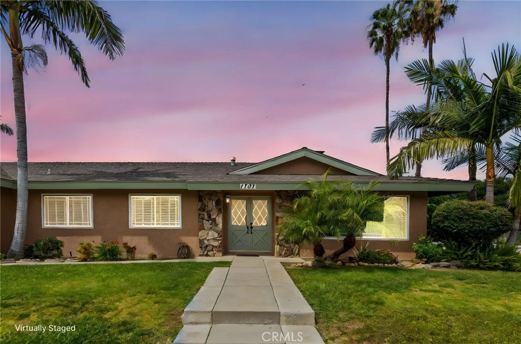 This stunning single-level pool home is a quiet oasis on a generous 11,000+ SQFT corner lot in a serene, highly desirable neighborhood. Offering immediate comfort and future potential—including space for an ADU or second-floor expansion with city/mountain views—this home is perfect for a growing family or an investor. A grand double-door entry opens to a bright living room with a wood-burning fireplace. Travertine flooring flows into a spacious family room with wet bar and open-concept gourmet kitchen featuring granite countertops, modern faucet, updated electric cooktop, and LED recessed lighting—ideal for daily living and entertaining. Double sliding doors lead to a backyard retreat with a resurfaced pool (2015) with underwater lighting, brick-lined planters with roses and fruit trees, and a side yard with ample RV parking—perfect for gatherings or relaxation. The primary suite offers pool views, a walk-in closet with custom built-ins, and an en-suite with a soaking Jacuzzi tub and marble-finished shower. Additional highlights include a flexible study (potential 5th bedroom), laminate flooring, double-pane windows, upgraded ceiling fans and lighting, and fresh interior/exterior paint throughout. Major systems have been thoughtfully maintained, including a heat pump and water heater that are only a few years old. Located just 5 minutes drive from major freeways, this home balances tranquility with convenience. Near parks, trails, dining, nightlife, three golf courses, multiple hospitals, it offers lifestyle, comfort, and long-term value in one exceptional package.