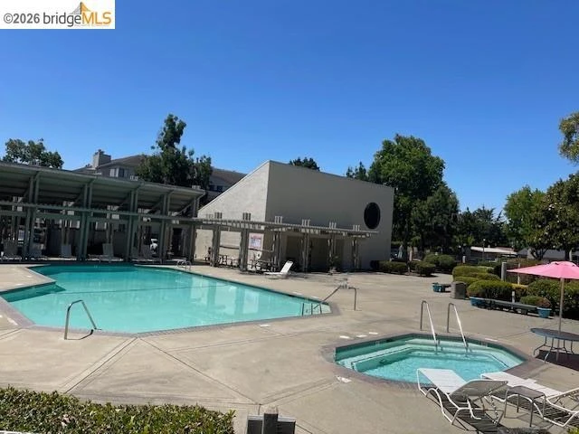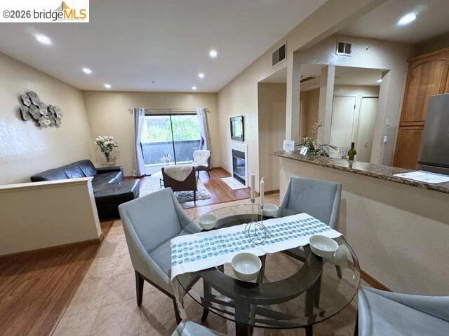 Motivated seller — bring your best offer! Welcome to this 2-bedroom, 2-bathroom home located in a charming community surrounded by mature trees in a welcoming Hayward neighborhood. This bright and inviting residence offers approximately 1,007 sq ft with an open, functional floor plan ideal for everyday living and entertaining. The kitchen flows seamlessly into the family room and features a generous breakfast bar, ample storage, and stainless-steel appliances. The primary suite includes a dual vanity, abundant closet space, and natural light, while the secondary bedroom offers flexibility for guests or a home office, with sliding door access to a private balcony and attached storage. Enjoy year-round comfort with central heating and air conditioning, a cozy fireplace, and indoor laundry with washer/dryer combo. Community amenities include a fenced in-ground pool and spa, picnic areas, and a clubhouse. Two assigned parking spaces are included — one in a gated garage and one near the building. HOA covers trash, water, roof, and exterior maintenance. Conveniently located near shopping, dining, Chabot College, the San Mateo Bridge, and easy access to Highways 92 and 880.