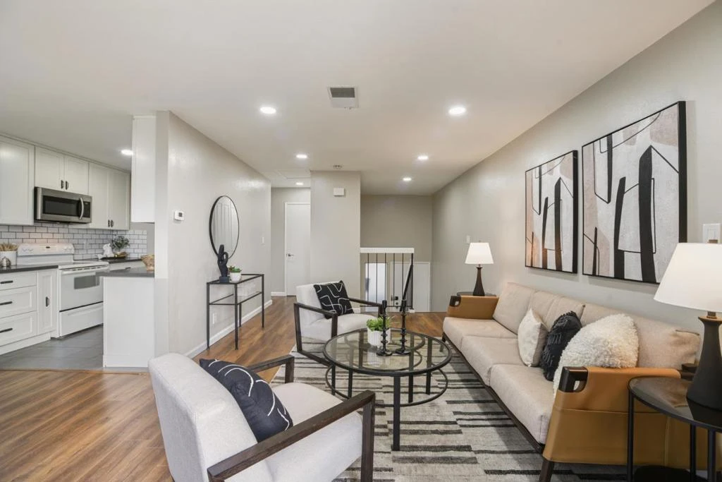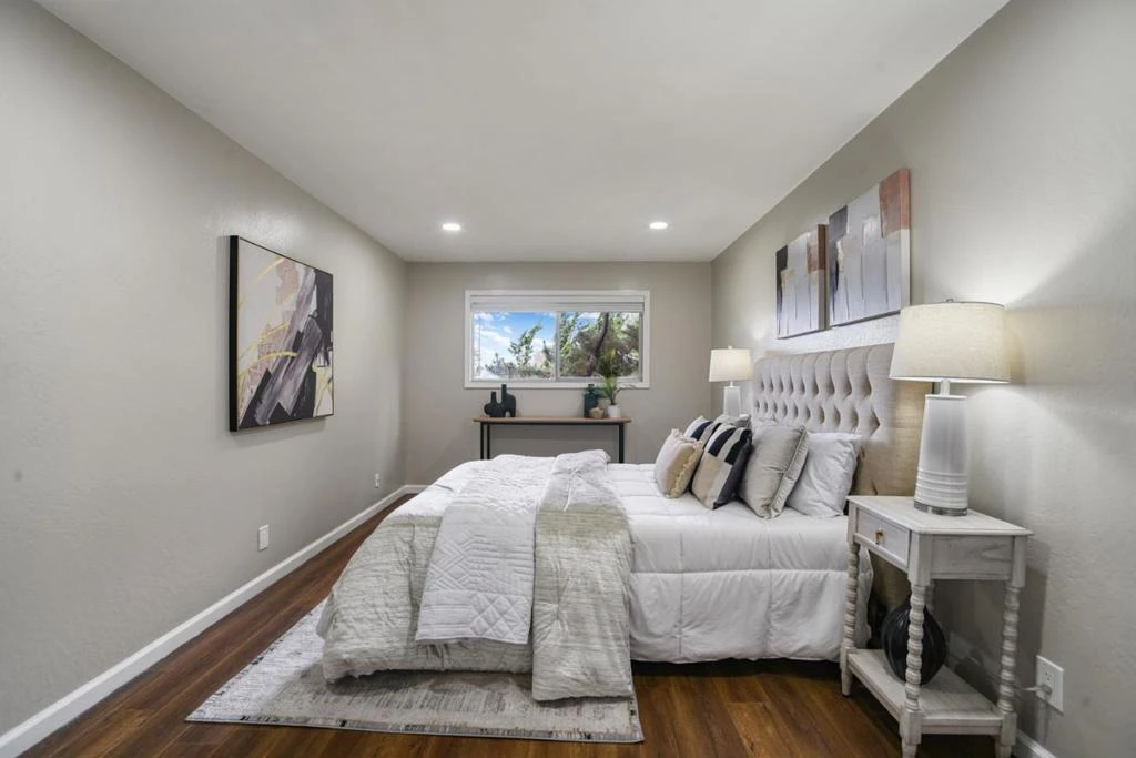 Welcome to tranquil hillside living in this beautifully updated townhome-style condo in Hayward's desirable Fairview neighborhood. Enjoy serene hill views from your private balcony and a light-filled 2-bedroom, 1.5-bath layout featuring upgraded recessed lighting, fresh interior paint, engineered-wood flooring, and thoughtful modern updates throughout. The split-level design offers comfortable living and entertaining space, complemented by stylish bathroom upgrades, refreshed finishes, and updated details for a clean, contemporary feel. Complete with in-unit laundry, extra storage, two parking spaces, and community pool and clubhouse access- all just minutes from downtown Hayward, Cal State East Bay, BART, shopping, dining, and major freeways. This move-in-ready home blends comfort, convenience, and scenic charm.